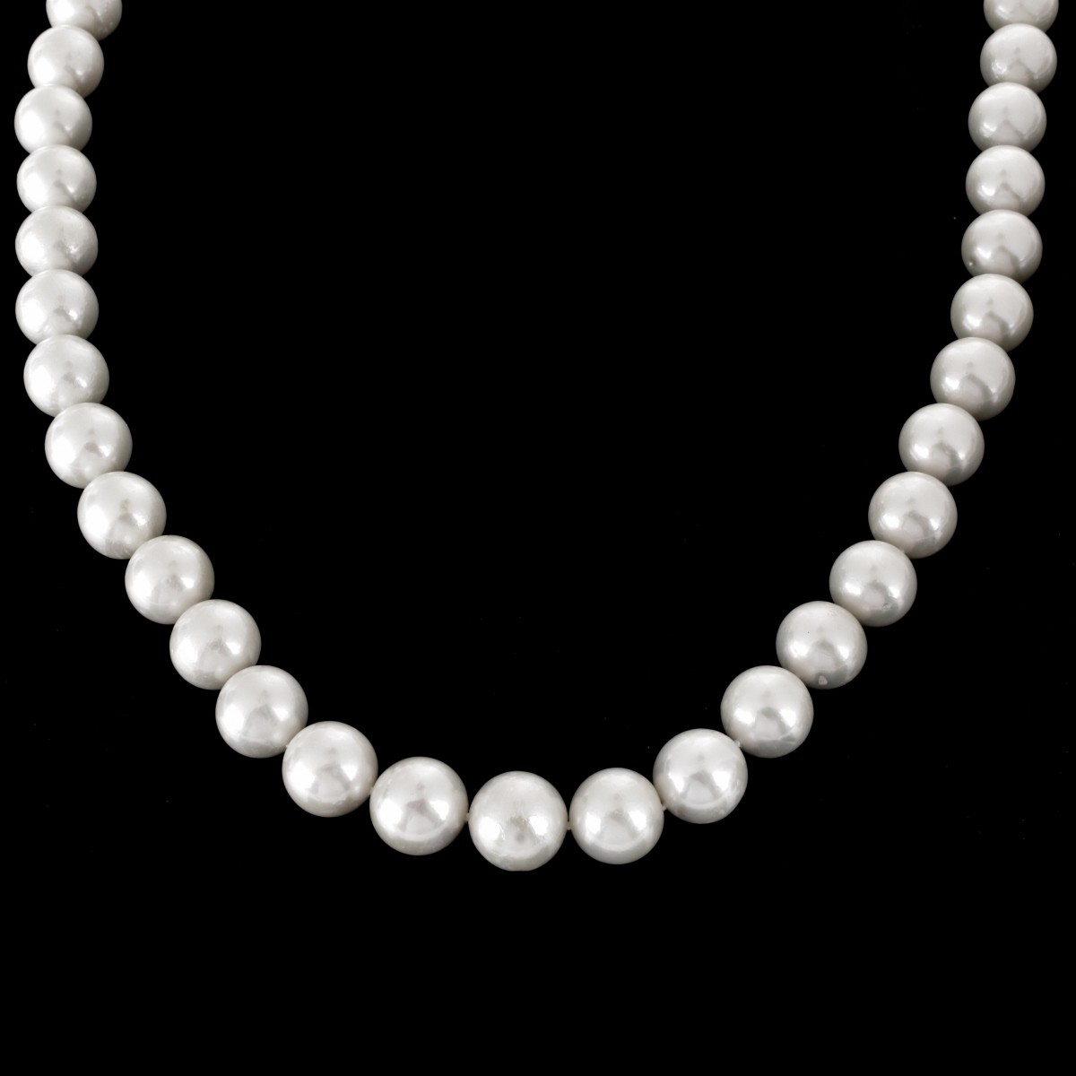 Single Strand Fifty-Eight 13.0-15.0mm South Sea Pearl Necklace with 14 Karat Yellow Gold and Diamond Clasp. Pearls with good polish and luster, minor natural blemishes. Clasp stamped 585. Measures 33" L. Approx. weight: 212.11 grams. Condition: Very good condition. Estimate: $4000.00 - $6000.00 Domestic Shipping: $32.00