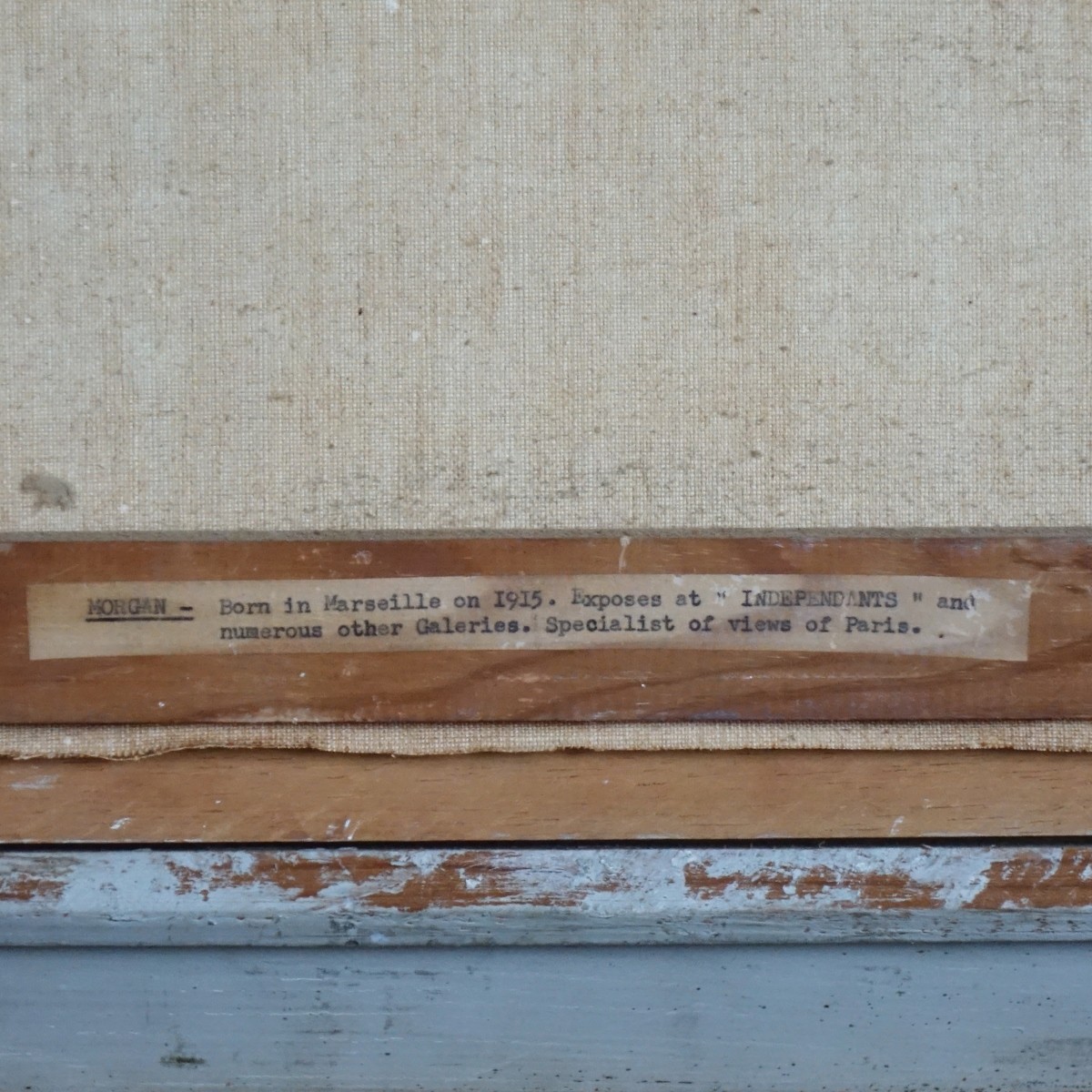 Morgan, French (born 1915) Oil on Canvas "View of Notre Dame Cathedral" Signed Lower Right. Measures 15" x 18", frame measures 20-3/4' x 24". Condition: Good condition. Estimate: $50.00 - $150.00 Domestic Shipping: $125.00