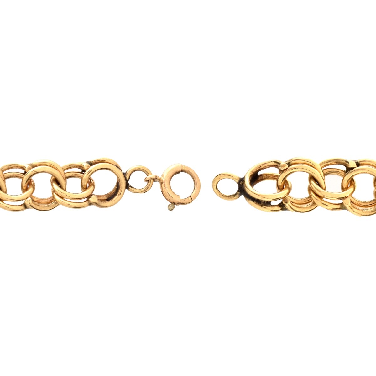 Vintage 14 Karat Yellow Gold Charm Bracelet. Ballerina with gemstone and pearl accents. Locket charm with guilloche enamel and one with small diamond accent. Two charms stamped 14K. Bracelet measures 7" L. Ballerina charm measures 1-1/8" L, 3/4" W. Approx. weight: 22.61 grams. Condition: Good vintage pre-owned condition. Locket charm with dents to verso Estimate: $100.00 - $1000.00 Domestic Shipping: $30.00