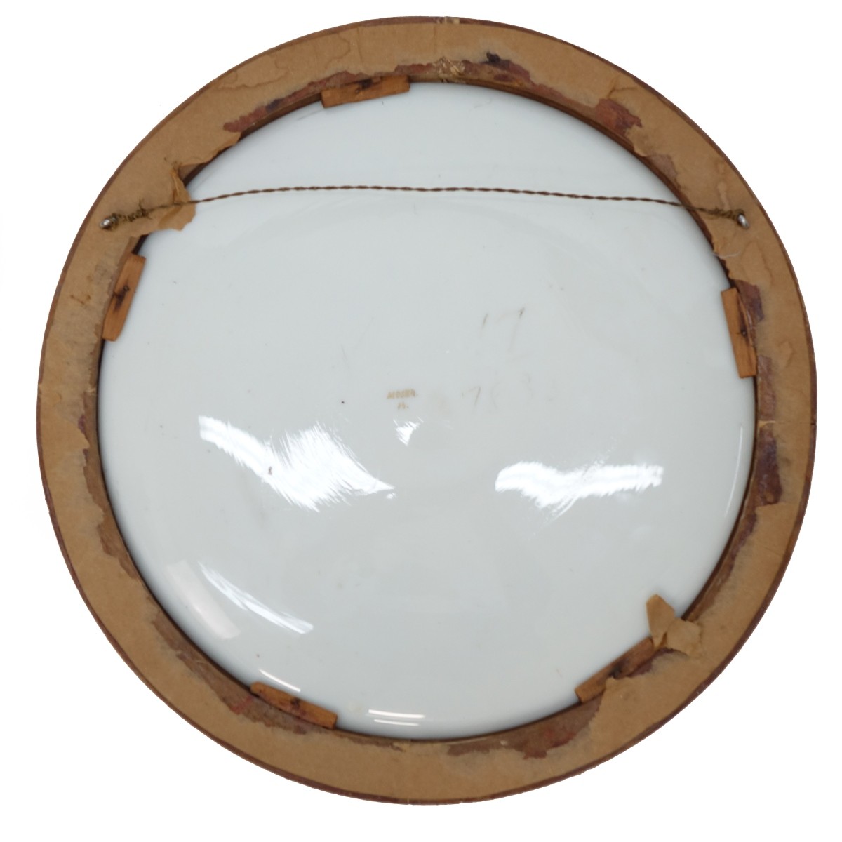 Antique Moser Enameled Glass Charger Mounted in Frame. Signed and numbered on reverse. Measures 13-3/8". Condition: Good condition. Estimate: $100.00 - $500.00 Domestic Shipping: $78.00
