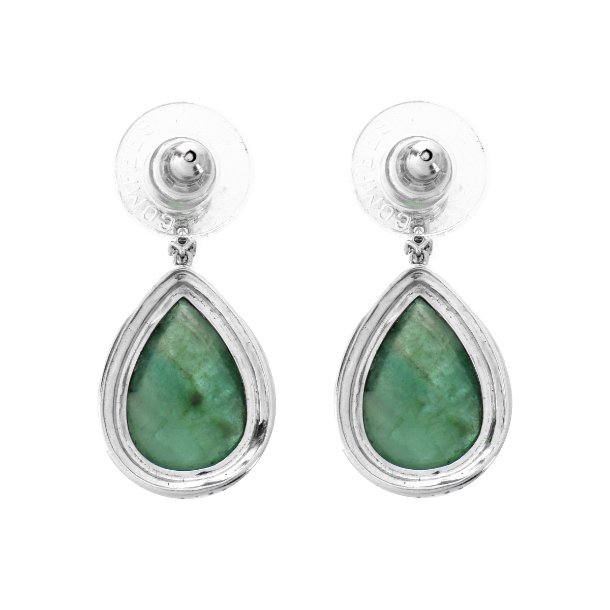 Approx. 11.07 Carat TW Two Pear Rose Cut and Two Oval Cut Emerald, 1.02 Carat TW Round Brilliant Cut Diamond and 18 Karat White Gold Pendant Earrings. Emeralds with vivid color. Diamonds G-H color, VS2-SI1 clarity. Stamped 18K 750. Measure 1-1/4" L, 5/8" W. Approx. weight: 7.28 grams. Condition: Very good condition. Estimate: $3000.00 - $5000.00 Domestic Shipping: $30.00