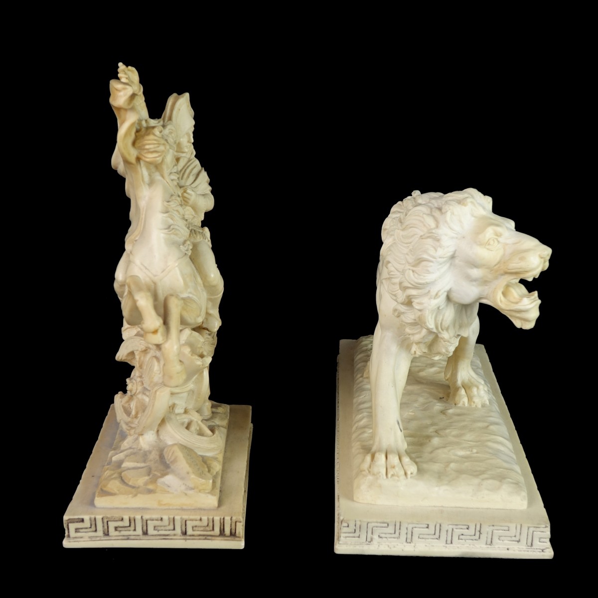A. Santini Composition Figure of a Lion along with Composition Figure of Napoleon on Horseback. Lion is signed, other is unmarked. Lion measures 9-1/2" x 14-3/4", Napoleon measures 12-1/2". Condition: Good condition. Estimate: $100.00 - $200.00 Domestic Shipping: Third party