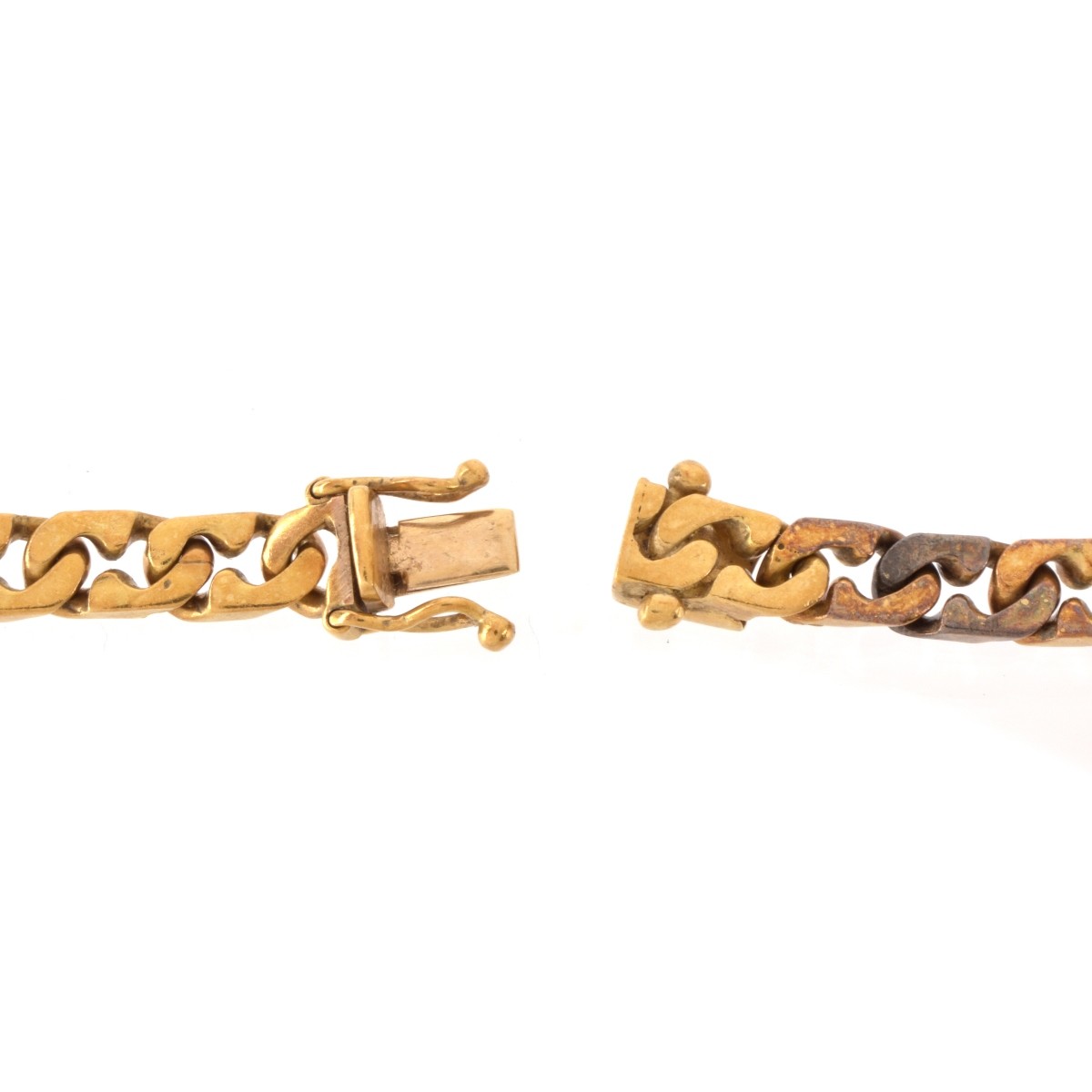 Vintage Italian Long 18 Karat Yellow Gold Link Chain Necklace. Stamped 750, Italian maker's mark. Measures 27-3/4" L, 3/16" W. Approx.. weight: 68.52 grams. Condition: Good vintage pre-owned condition. Needs cleaning. Estimate: $2500.00 - $3000.00 Domestic Shipping: $30.00