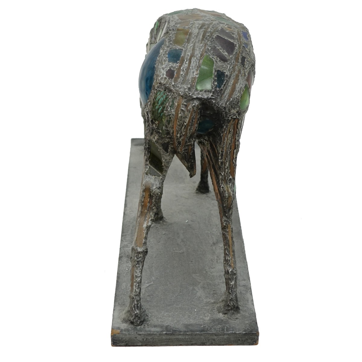 Weiner (20th Century) Large Leaded Glass and Metal Sculpture of a Dog Figure. Unmarked. Measures 15" x 30" x 7-1/2". Condition: Good condition. Estimate: $100.00 - $400.00 Domestic Shipping: Third party