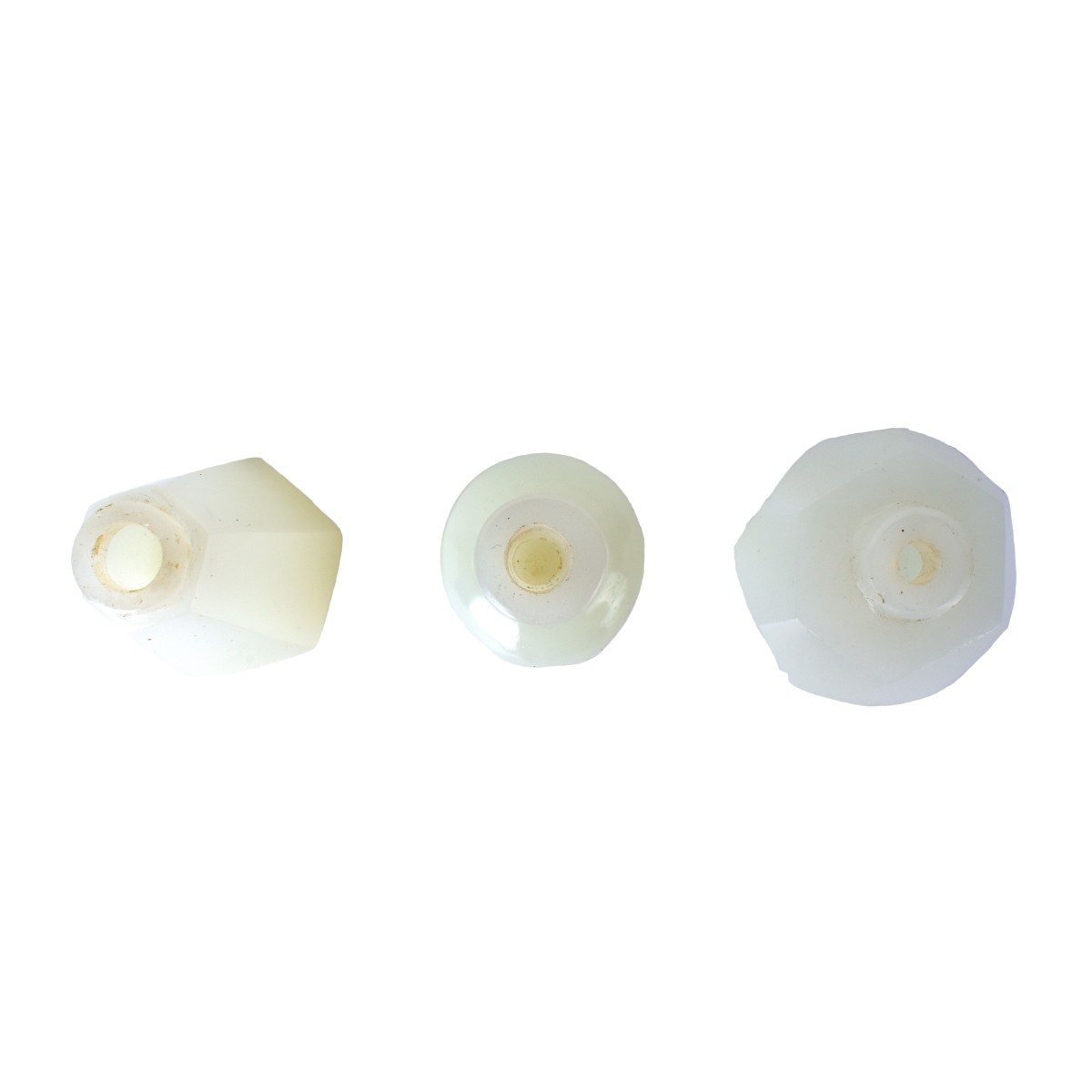 Three (3) Antique Chinese White Glass Snuff Bottles with Stoppers. Unsigned, each in various form. Tallest measures 2-7/8" H, smallest measures 2-1/2" H. Condition: Good condition Estimate: $50.00 - $150.00 Domestic Shipping: $32.00