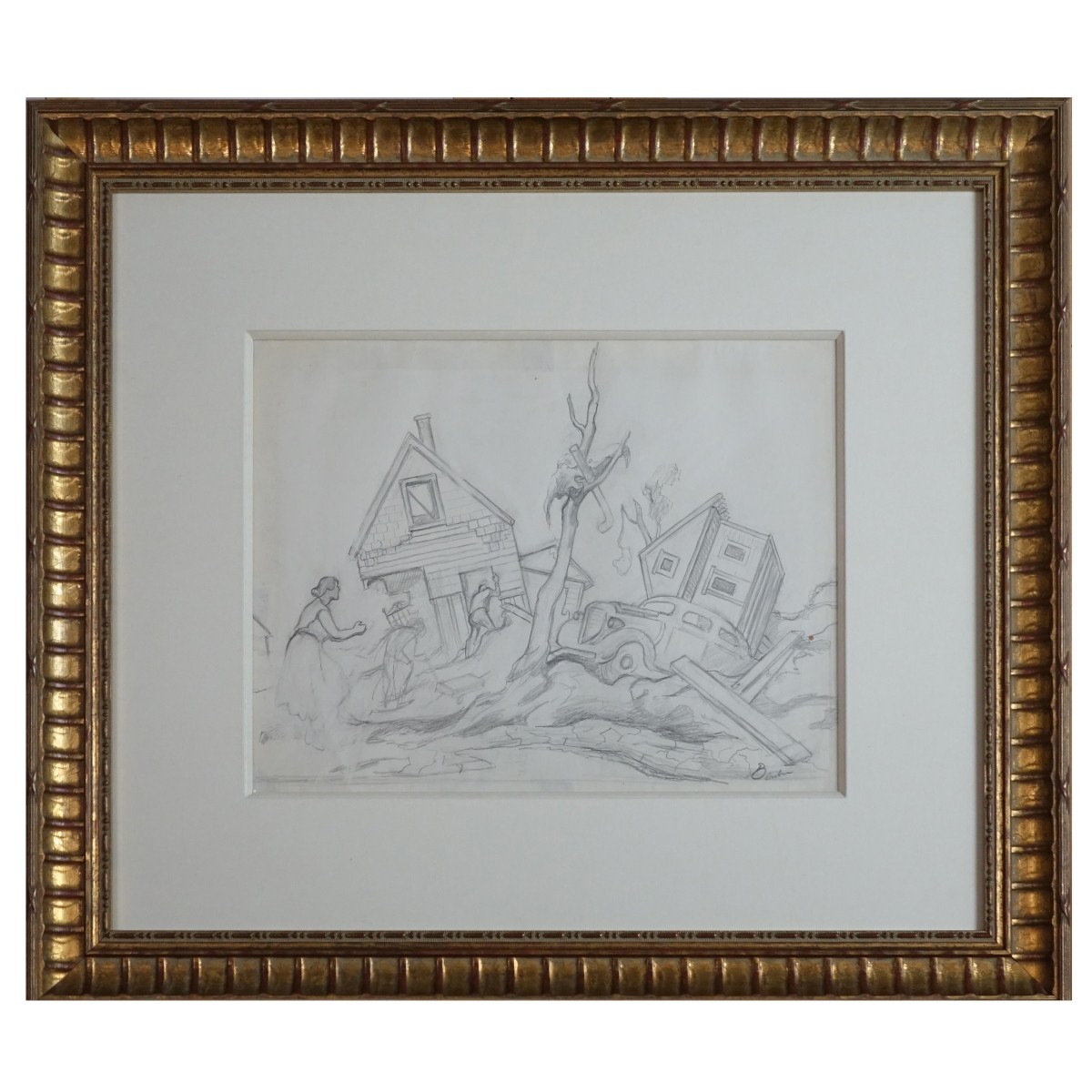 Attributed To: Thomas Hart Benton, American (1889 - 1975) Pencil Drawing on Paper "Homecoming" Signed Lower Right. Sight measures 10-1/2" x 13-1/2", frame measures 21-3/4" x 24-3/4". A work listed as "attributed to:" the respective artist has not been authenticated by a recognized expert on the artist in question. We offer such a work without warranty as to authenticity. Condition: Very small spot right center otherwise good condition. Estimate: $60000.00 - $70000.00 Domestic Shipping: $165.00