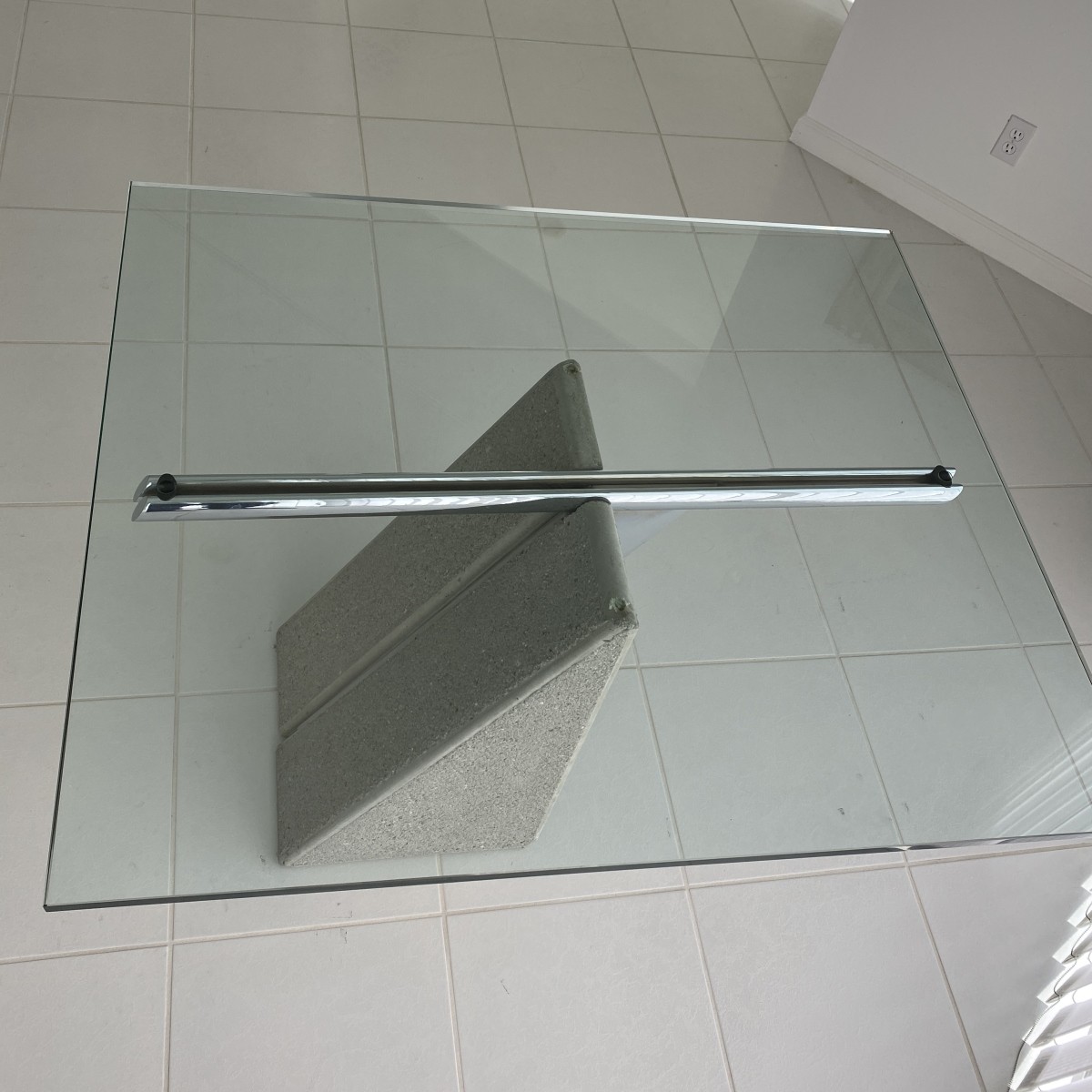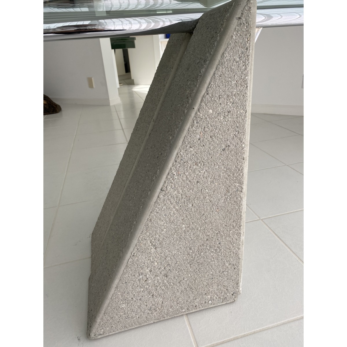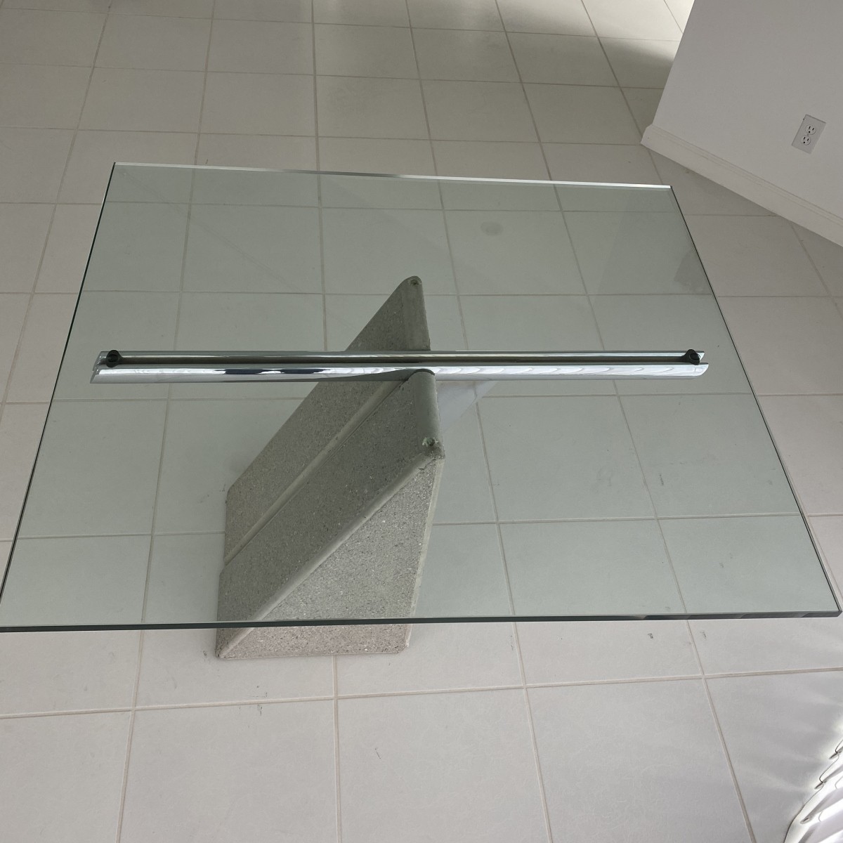 Saporiti Glass Top Dining Table Designed by Giovanni Offredi. Base having concrete and chrome parts. Measures 29" x 45" x 38-3/4". Condition: Good condition. Estimate: $500.00 - $1500.00 Domestic Shipping: Third party