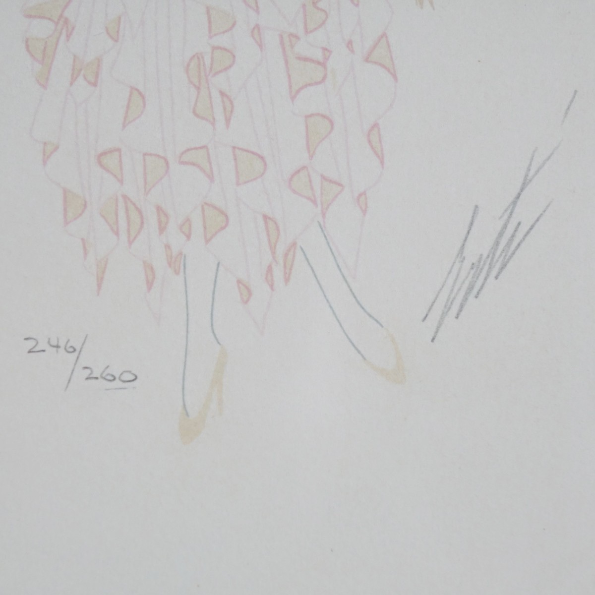 Romain (Erte) De Tirtoff (1892 - 1990) Color Lithograph on Paper "Fashion Model" Signed and Numbered 246/260. Measures 12" x 10", frame measures 20-1/2" x 18-1/2". Condition: Good condition. Estimate: $200.00 - $500.00 Domestic Shipping: $115.00