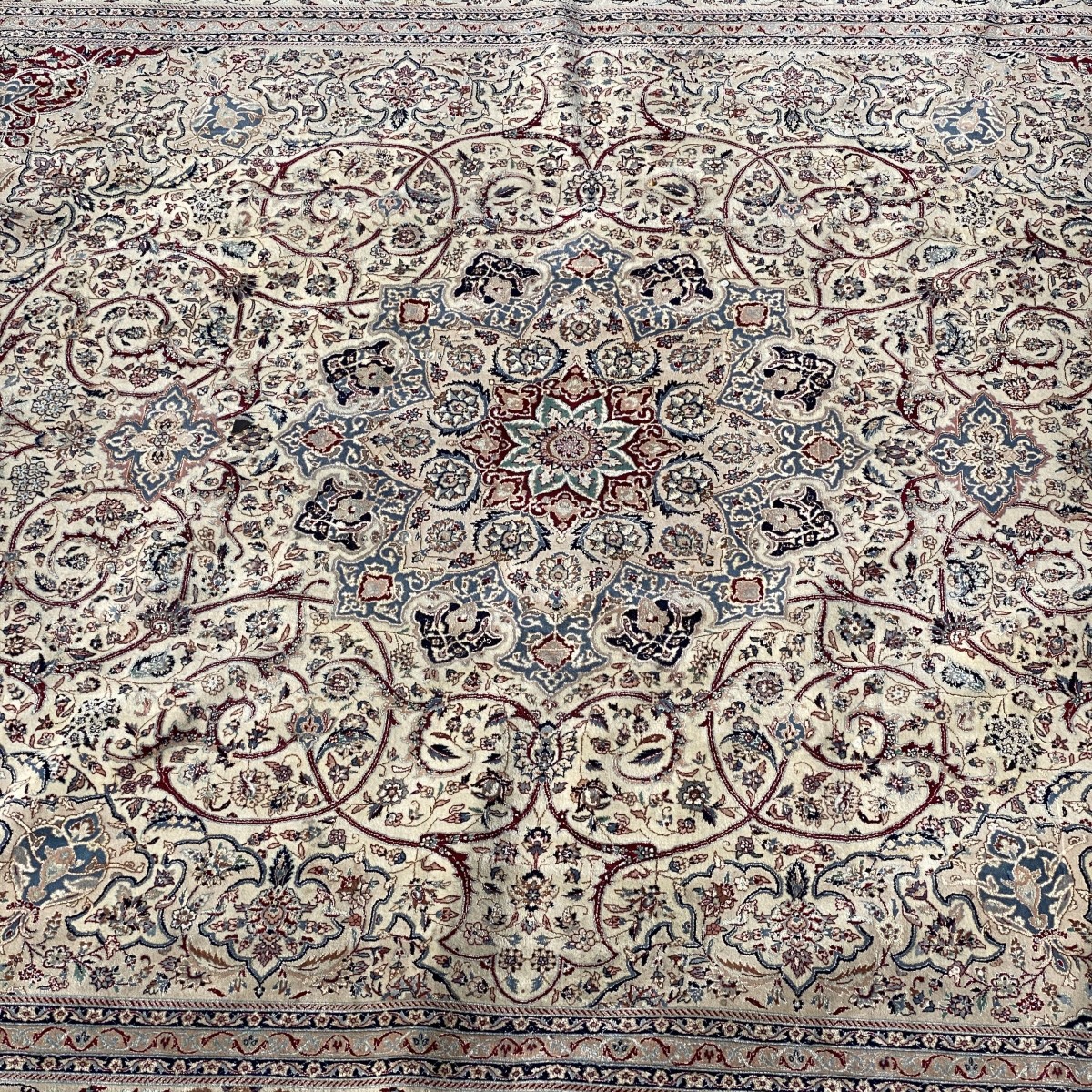 Semi Antique Persian Silk Rug. Busy continuous floral decoration. Measures 96-1/2" x 120-1/2". Condition: Good condition. Needs cleaning. Estimate: $200.00 - $1000.00 Domestic Shipping: Third party
