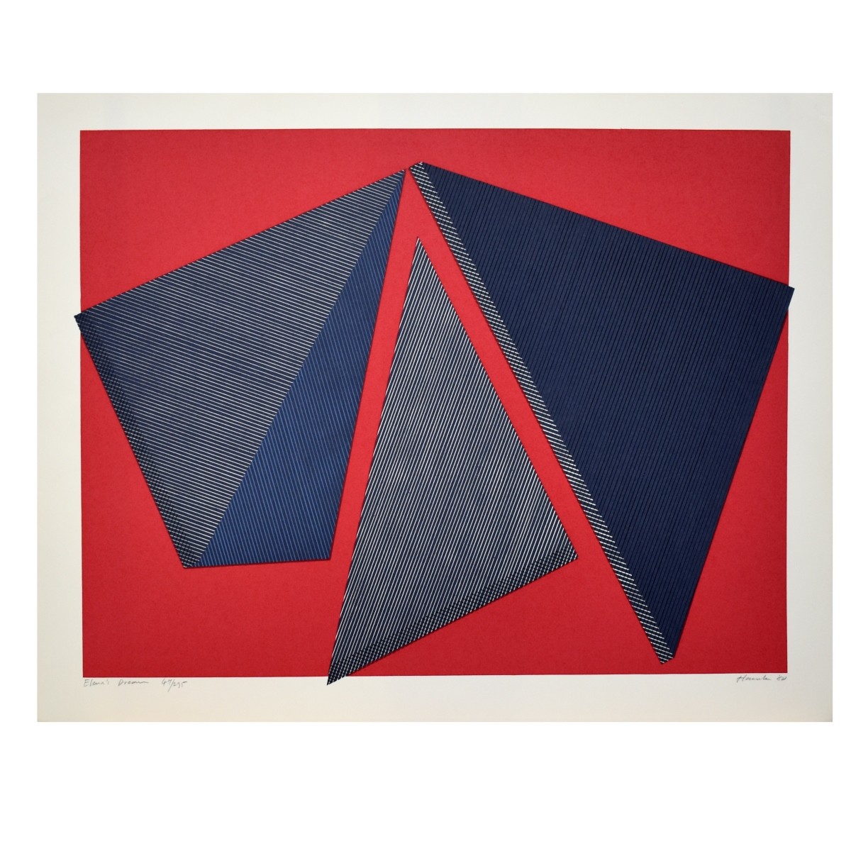 Jean Marie Haessle, American (Born 1939) Two (2) Serigraphs on Paper. Lot includes: "Bermuda Triangle" and "Elana"s Dream".Pencil signed and numbered. Sizes consists of: 23" x 29" (each are unframed). Condition: Good condition. Estimate: $50.00 - $100.00 Domestic Shipping: $72.00