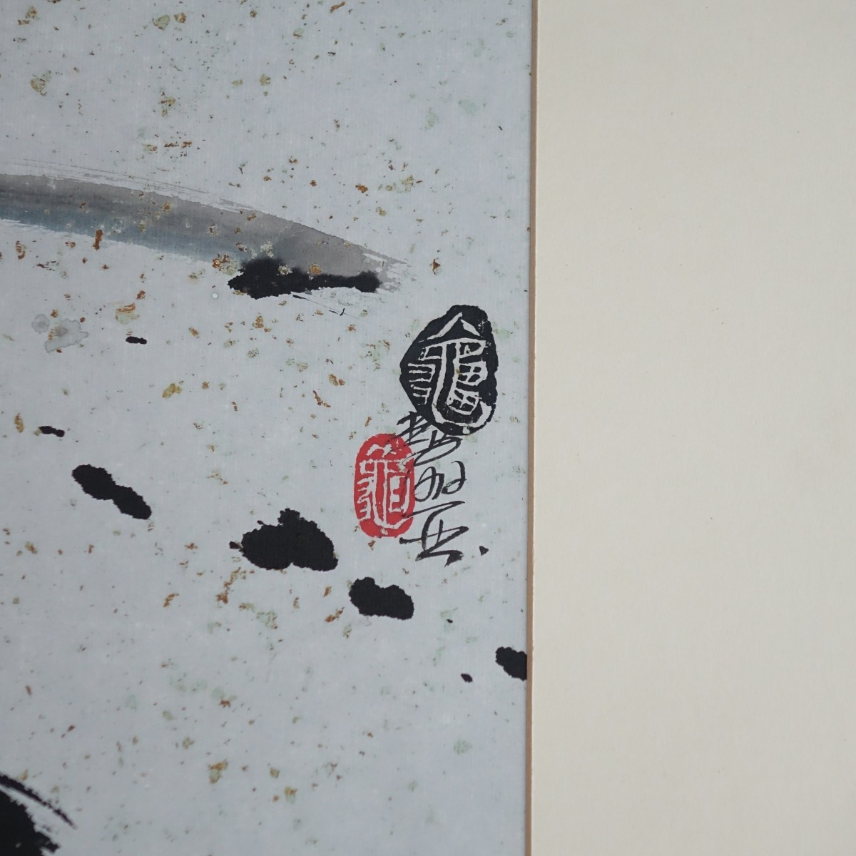 Chinese (20th Century) Gouache on Paper, Abstract Brush Strokes, Calligraphy and Double Seal Signed Center Right. Sight measures 25-3/4" H x 25-5/8" W, frame measures 34-1/4" H x 34-1/4" W. Condition: Good condition Estimate: $150.00 - $300.00 Domestic Shipping: Third party