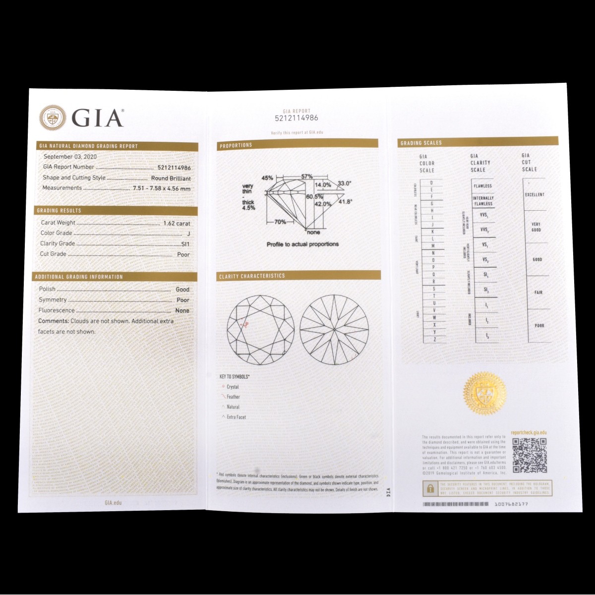GIA Certified 3.38 Carat TW Round Brilliant Cut Diamond and 14 Karat White Gold Ear Studs. Diamonds are 1.76 carat, J color, SI1 and 1.62 carat, J color, SI1 clarity. Stamped 14K. Approx. total weight: 2.27 grams. GIA Reports 2213115041 dated 9/3/2020 and 5212114986 dated 9/3/2020 to accompany this lot. Condition: Very good condition. Estimate: $8000.00 - $12,000.00 Domestic Shipping: $32.00