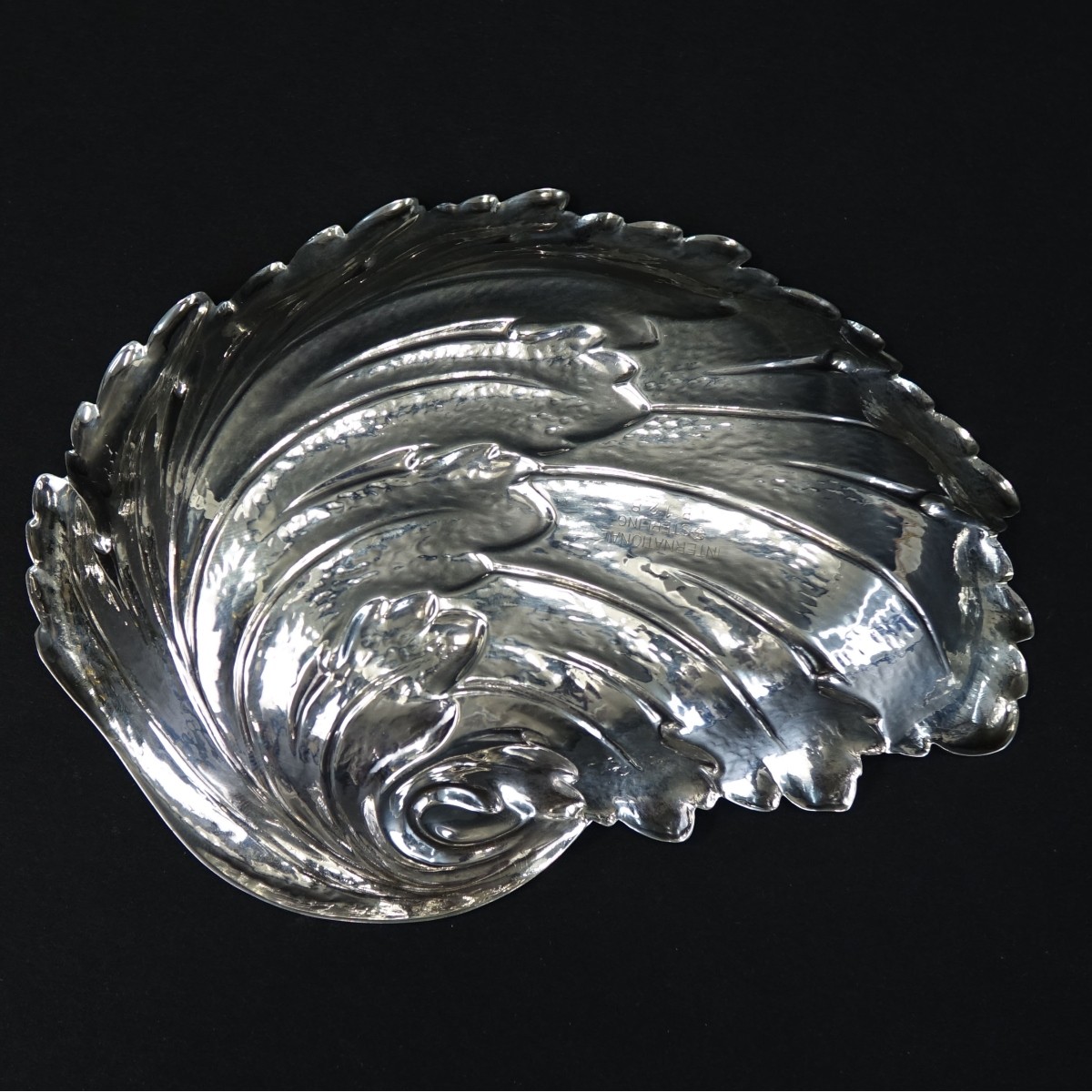 International Sterling Leaf Shaped Open Bowl. Signed and B128. Measures 1" x 6-1/8". Approx. weight: 3.8 troy ounces. Condition: Good condition. Estimate: $50.00 - $150.00 Domestic Shipping: $38.00