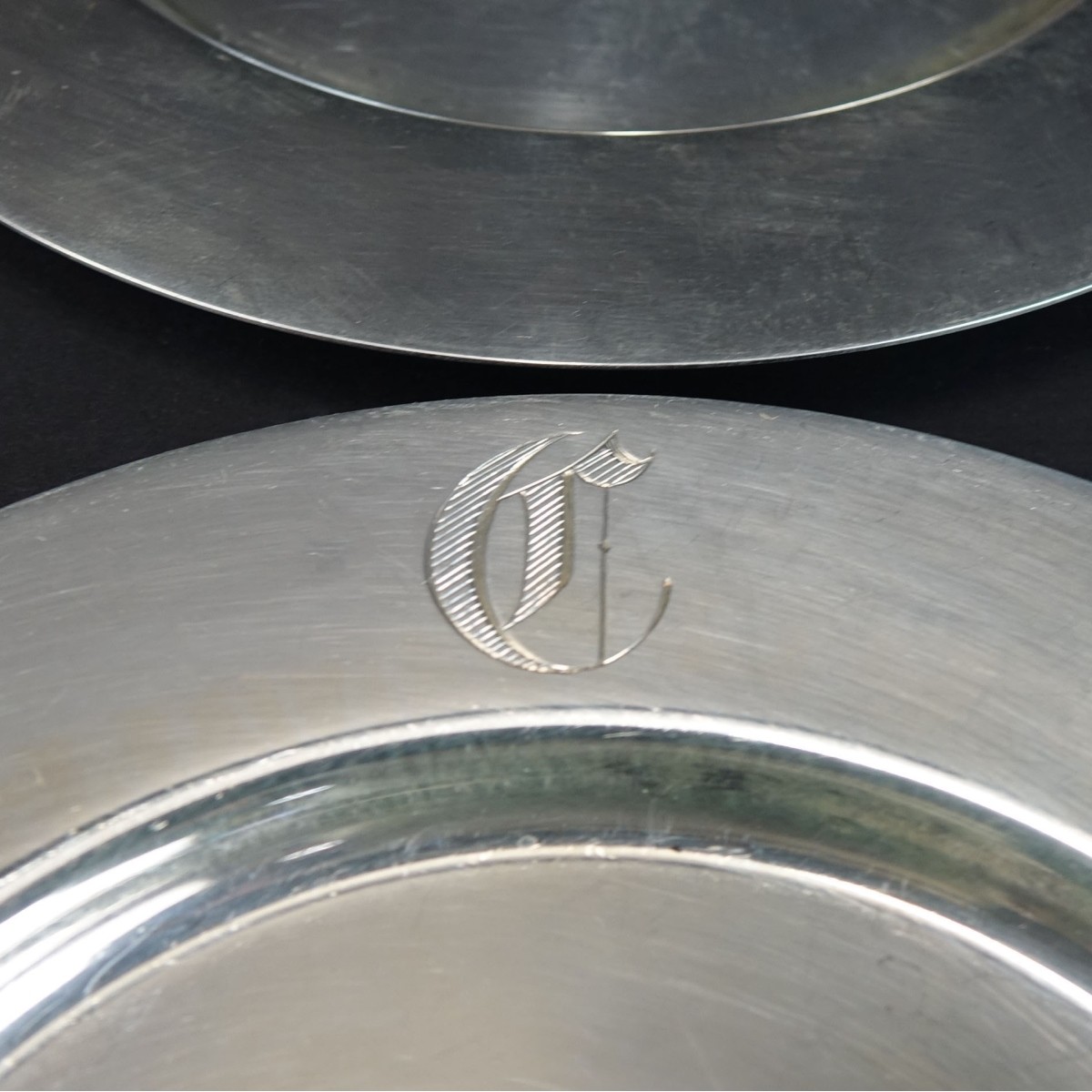 Eight (8) Wallace Sterling Silver Bread Plates. Signed and numbered 9. Monogram on the rim. Measures 6". Approx. weight: 36.16 troy ounces. Condition: Good condition. Estimate: $300.00 - $500.00