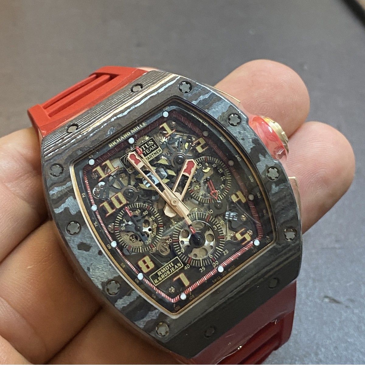 Circa 2014-2015-2016 Richard Mille RM011 Team Romain Grosjean 18 Karat Rose Gold and NTPT Carbon Watch. Automatic self-winding movement. Rubber bracelet. Case measures 50mm. Complete with box and papers. Condition: Very good condition. Please note the gallery does not warranty the running condition of watches. For additional information and/or WhatsApp video please contact our resident GIA Graduate Gemologist, Russ Kodner at 954.650.5030 Estimate: $400,000.00 - $500,000.00 Domestic Shipping: $44.00