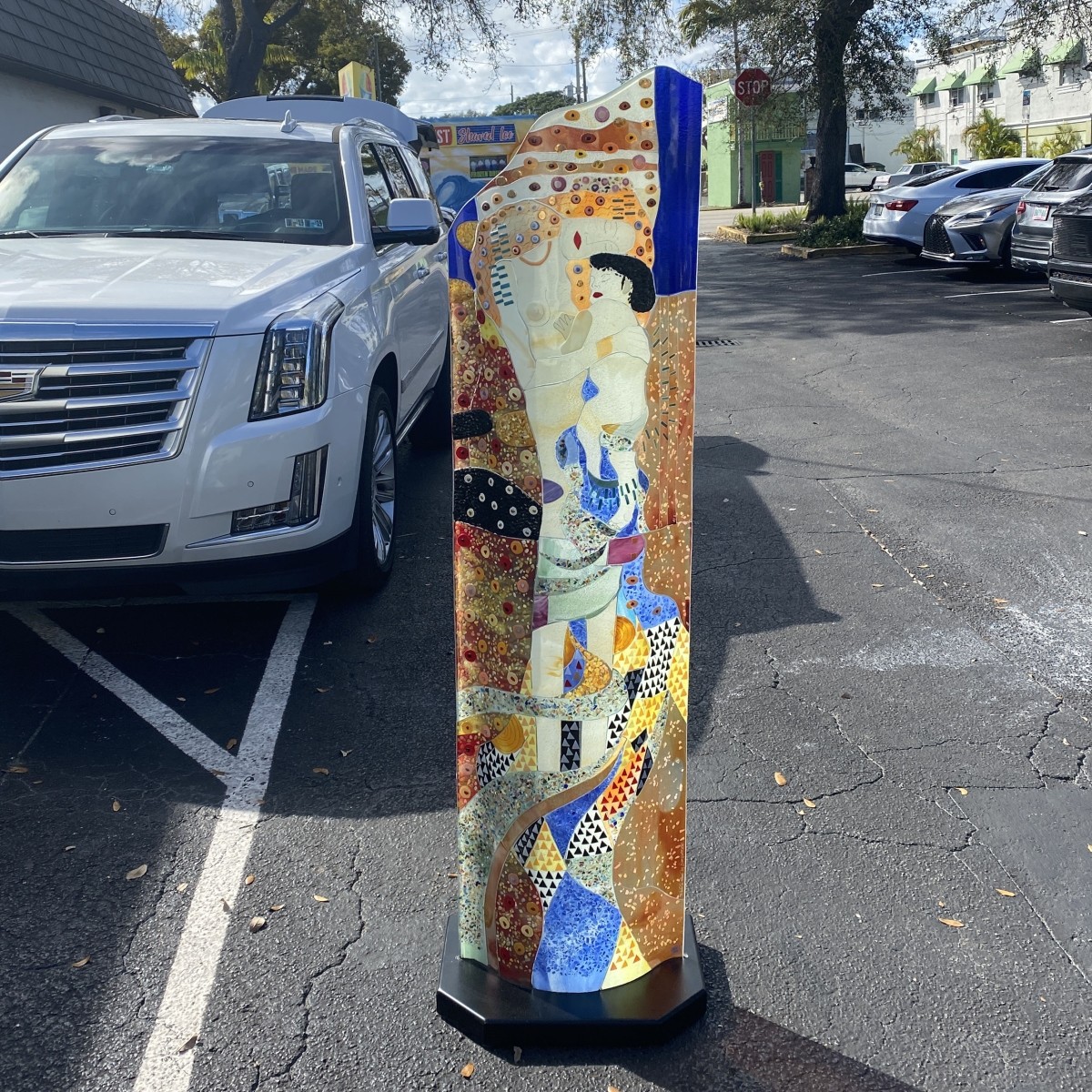 Kjell Engman for Kosta Boda Art Glass Sculpture Mounted on Electrified Iron Stand. Signed. Bird figure motif. Measures 70-3/4" x 11-1/4". Condition: Good condition. Estimate: $1000.00 - $2000.00 Domestic Shipping: Third party