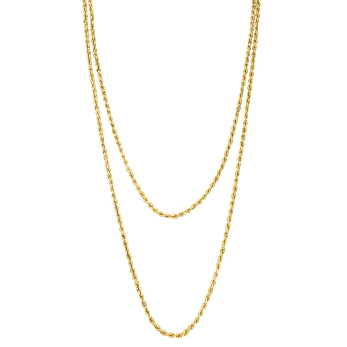 Vintage 14 Karat Yellow Gold Rope Chain / Necklace. Stamped 585 14K. Measures 32" L, 1/16" W. Approx. weight: 16.73 grams. Condition: Very good condition. Estimate: $500.00 - $700.00 Domestic Shipping: $30.00