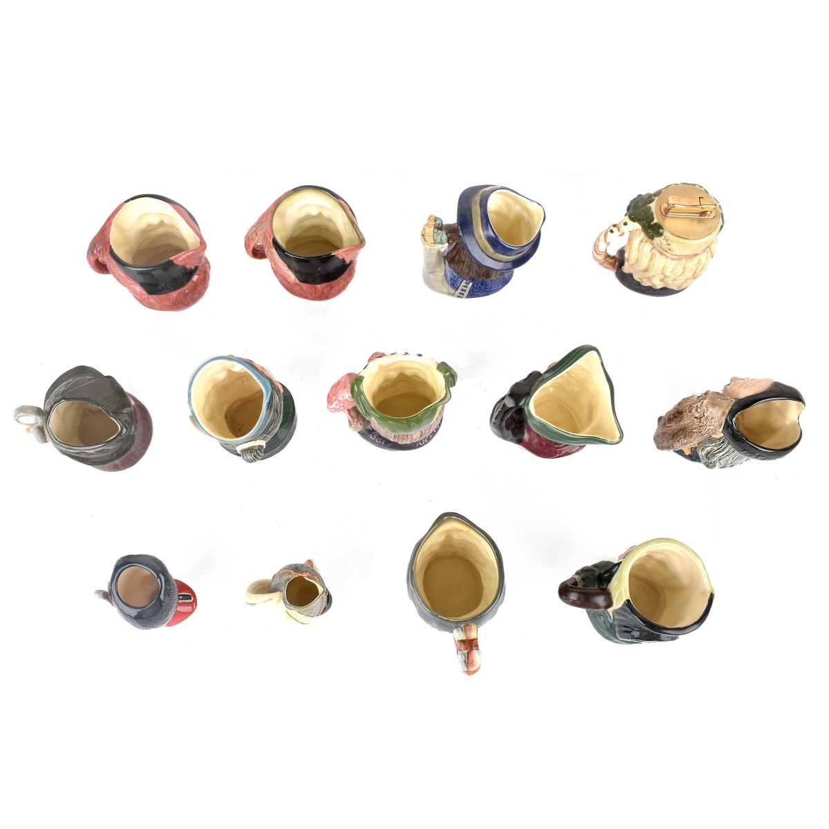 Grouping of Thirteen (13) Royal Doulton Toby Mugs. Each appropriately signed. One mounted as a lighter. Various sizes ranging from 4-3/4" to 2-1/2". Condition: Good condition. Estimate: $50.00 - $150.00 Domestic Shipping: $75.00