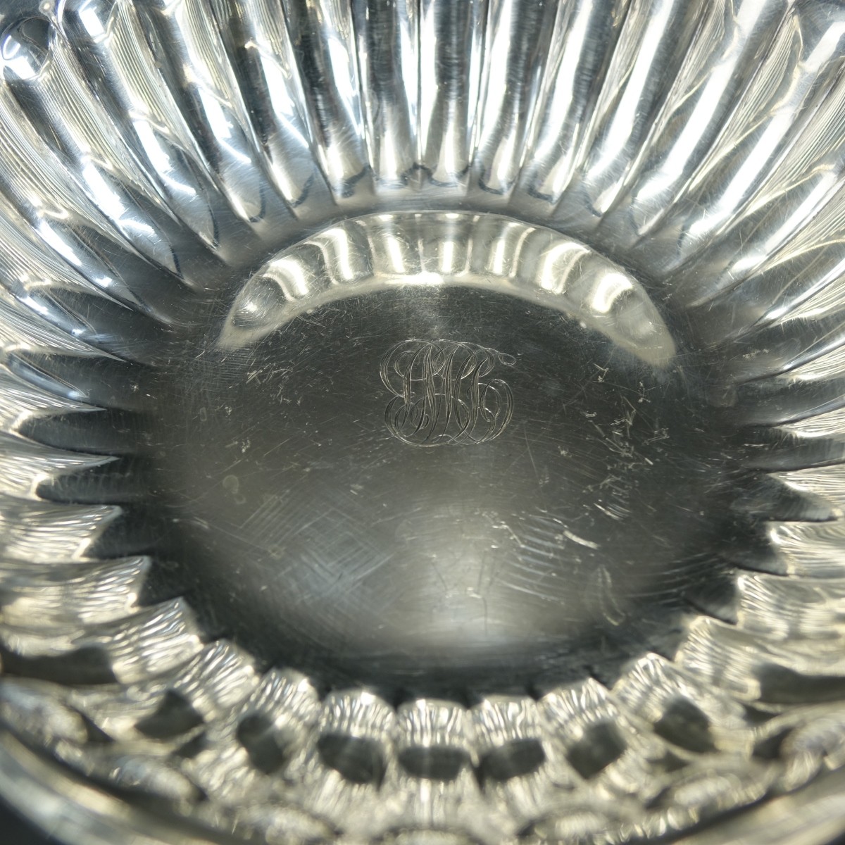 Reed and Barton Sterling Silver Repousse Bowl. Signed and numbered 660. Monogrammed. Measures 3" x 11". Approx. weight: 16.46 troy ounces. Condition: Good condition. Estimate: $200.00 - $300.00 Domestic Shipping: $68.00