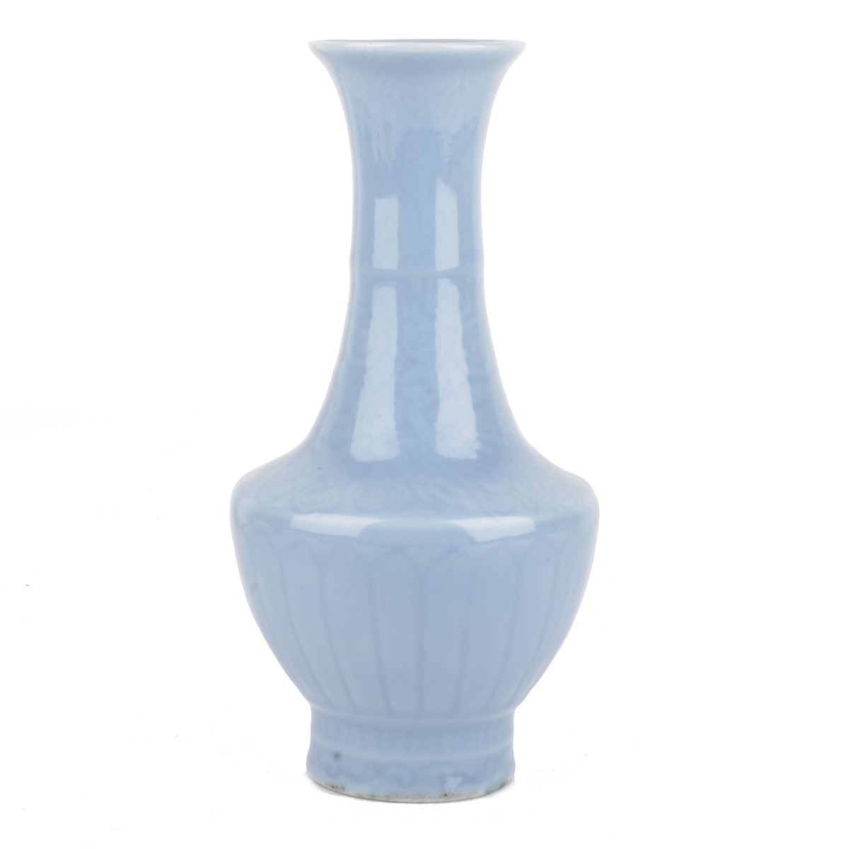 Chinese 19/20th Century Light Blue Porcelain Bottle Vase. Measures 9" H, 4-1/4" W. Condition: Very good condition. Estimate: $200.00 - $300.00 Domestic Shipping: $46.00