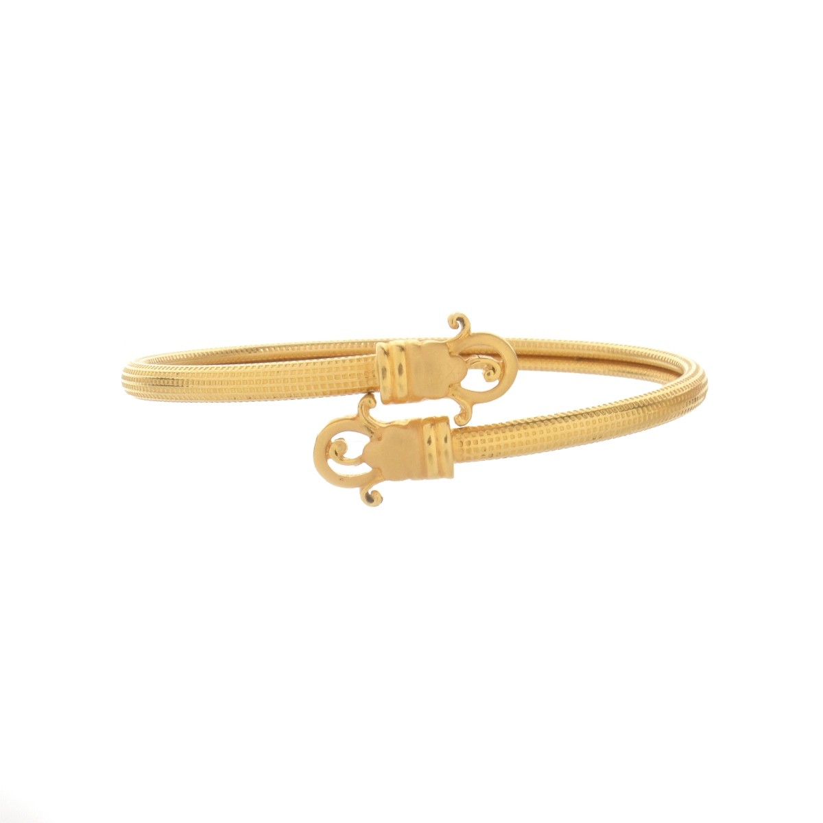 18 Karat Yellow Gold (or Higher) Baby Bangle Bracelet. Measures 5" L, 5/16" W. Approx. weight: 5.70 grams. Condition: Very good condition. Estimate: $100.00 - $150.00 Domestic Shipping: $30.00