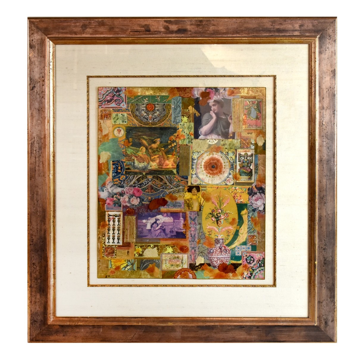 Melanie Boone, American (late 20th century) Mixed Media Collage on Paper, Assorted Images, Signed Lower Center. Measures 24" H x 20" W, frame measures 41" H x 37" W. Condition: Good condition Estimate: $250.00 - $500.00 Domestic Shipping: Third party