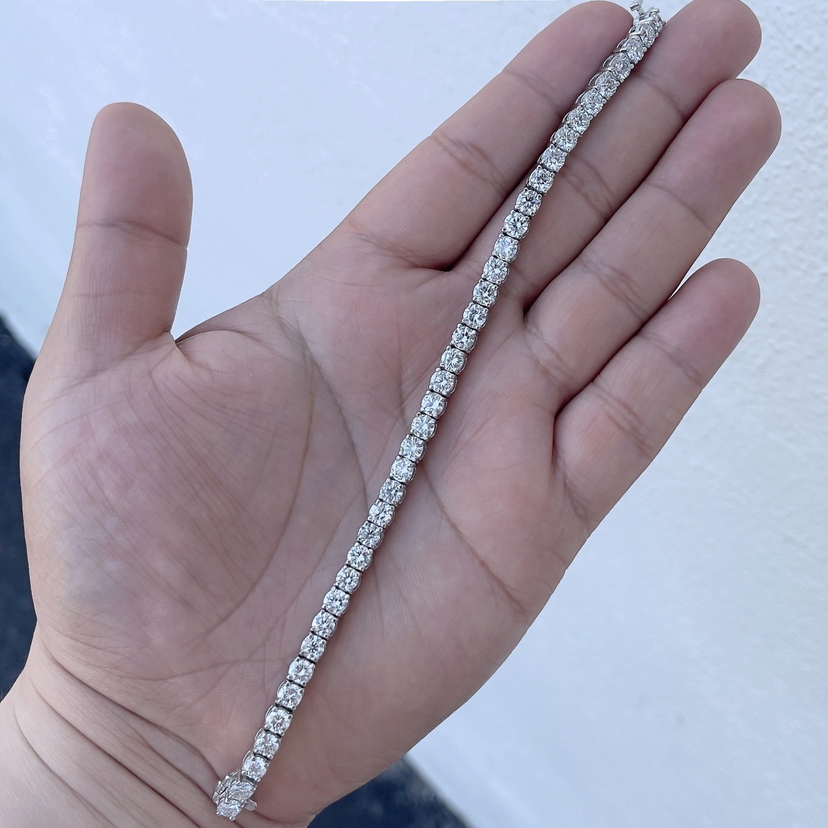 Approx. 12.40 Carat TW Thirty Eight Round Brilliant Cut Diamond and Platinum Tennis Bracelet. Diamonds F-G color, VVS-VS clarity. Stamped PLA. Measures 7-1/8" L, 3/16" W. Approx. weight: 31.40 grams. Condition: Very good condition. For additional information and/or WhatsApp video please contact our resident GIA Graduate Gemologist, Russ Kodner at 954.650.5030 Estimate: $16,000.00 - $20,000.00 Domestic Shipping: $32.00