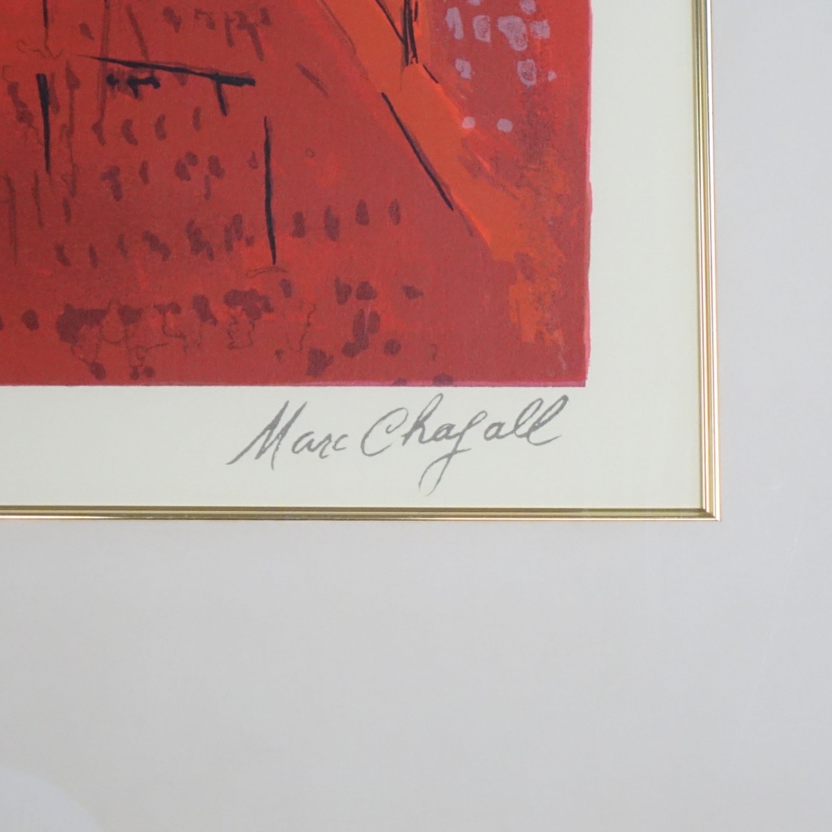 After: Marc Chagall, Russian (1887 - 1985) Offset Lithograph in Color "Carmen" Signed in the Plate and Numbered 130/250. Measures 35" x 23-1/2", frame measures 49" x 37-1/4". Condition: Good condition. Estimate: $200.00 - $500.00 Domestic Shipping: Third party