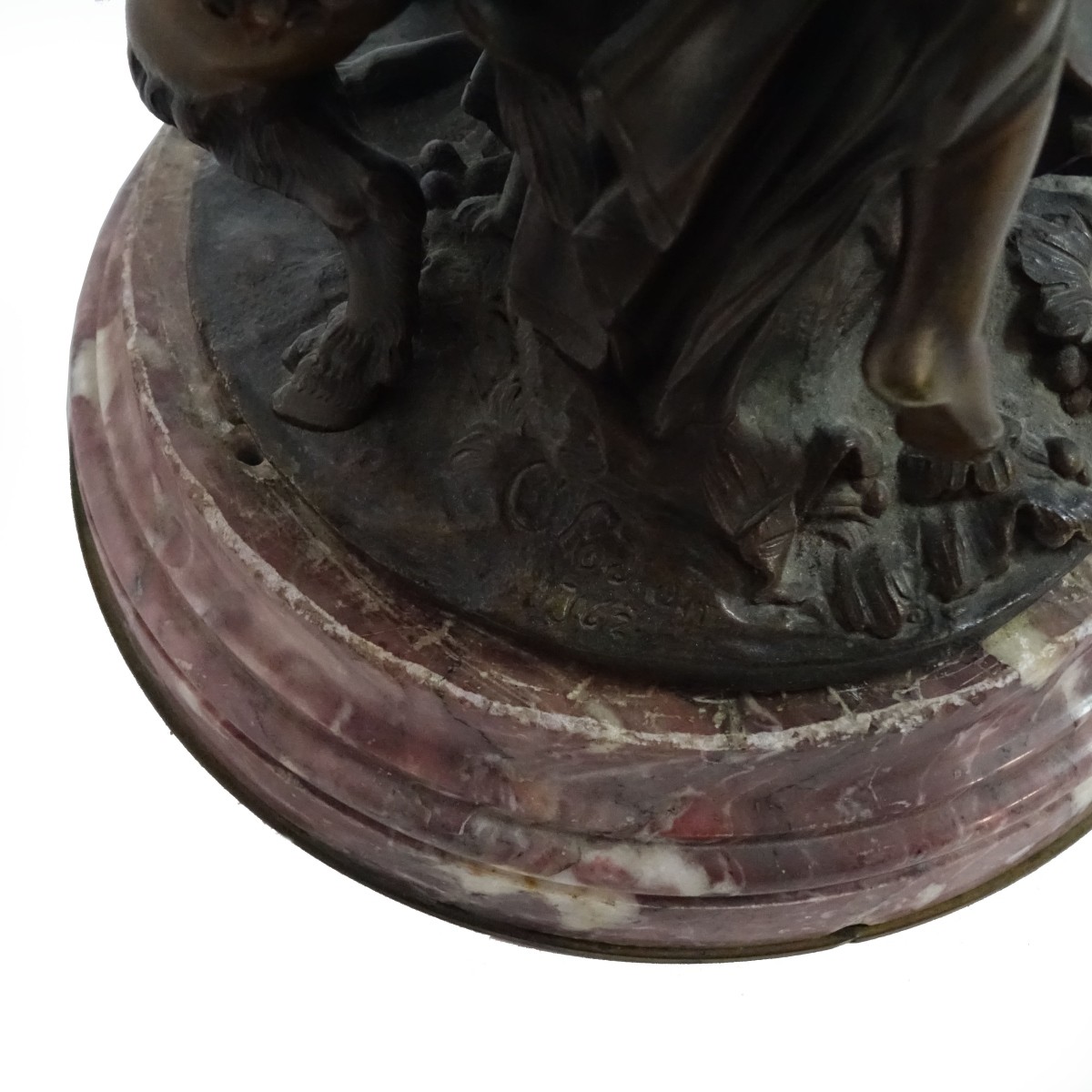 After: Michel Claude Clodion, French (1738 - 1814) Bronze Sculpture on Marble Base "Bacchanalia" Signed and Dated on Obverse Side. Measures 23" x 11-1/2" (w/o base). Condition: Marble is not attached to the bronze, rubbing to the surface, chips to the marble base otherwise good condition. Estimate: $500.00 - $1500.00 Domestic Shipping: Third party