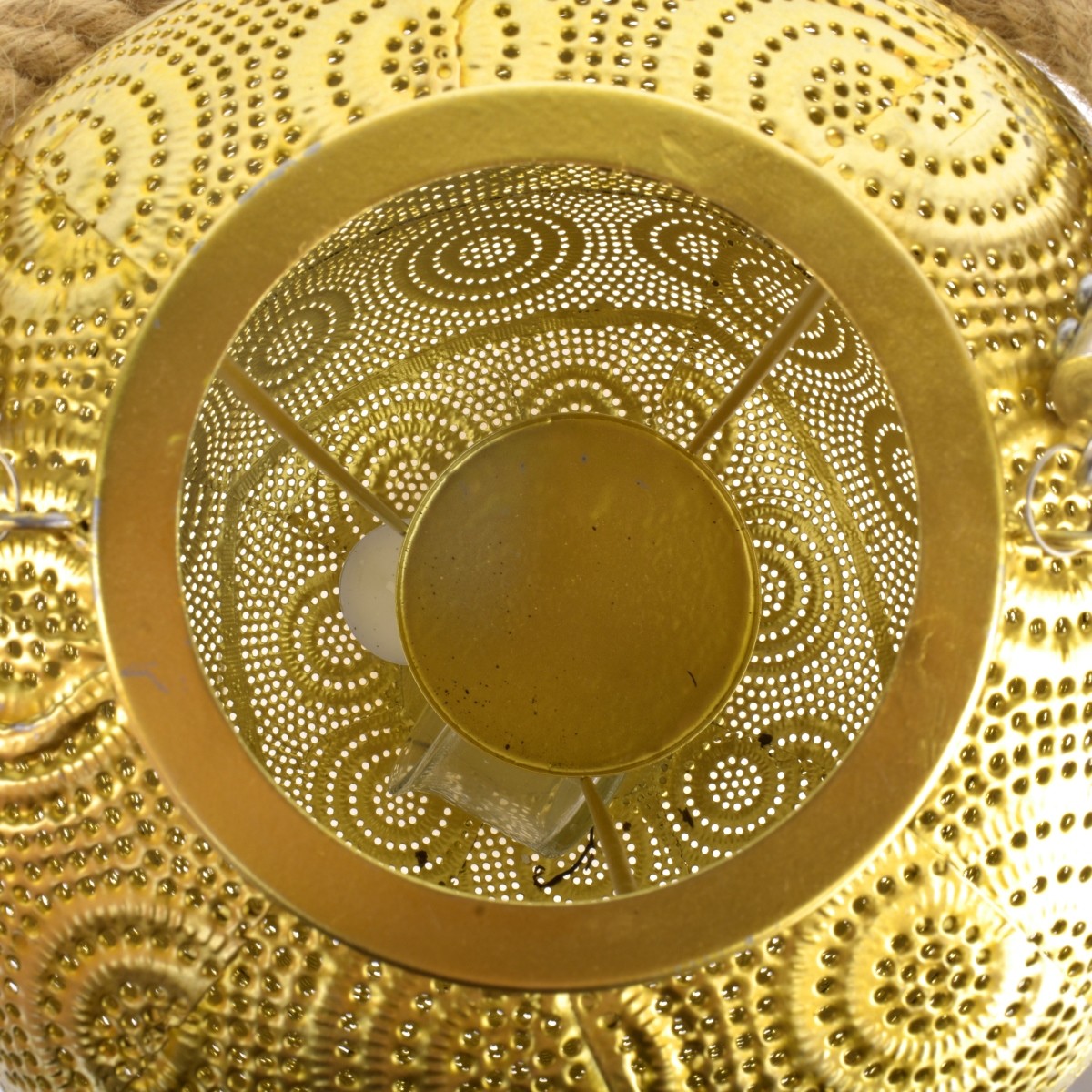 Lot of Three (3) Modern Reticulated Gilt Metal Lanterns. Measures 12-3/8" x 8-1/2". Condition: Good condition. Estimate: $50.00 - $100.00 Domestic Shipping: Third party