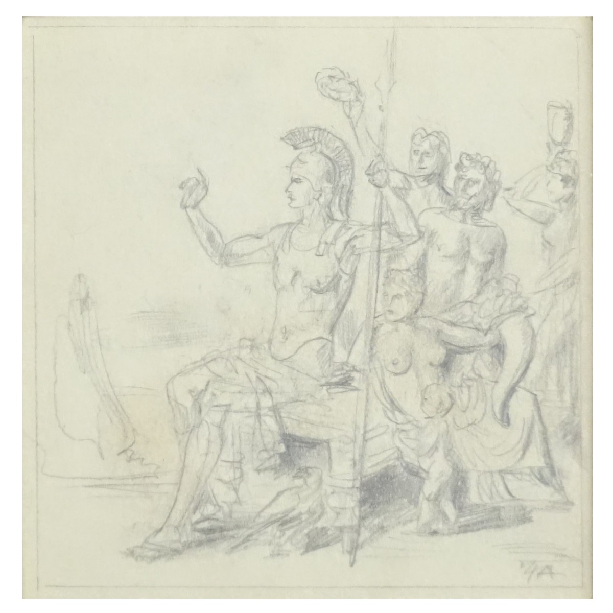 Early 20th Century Old Master Style Drawing on paper "Mars, Venus and Cupid" Appears to be Signed Lower Right. Measures 4-1/4" x 4-1/4", frame measures 12-1/2" x 12-1/4". Condition: Good condition. Estimate: $150.00 - $250.00 Domestic Shipping: $76.00