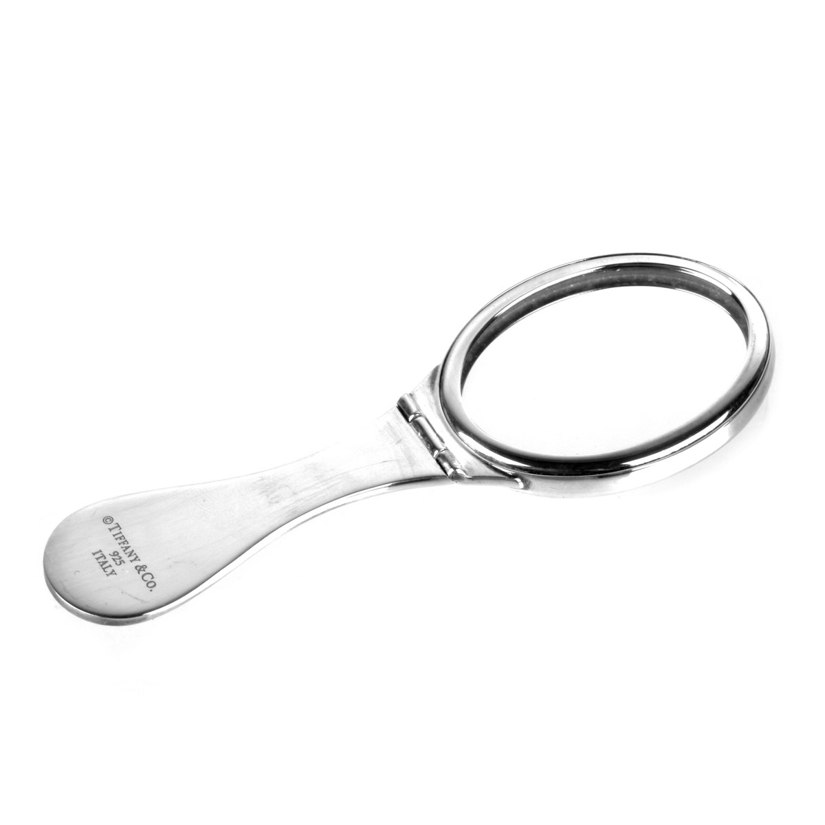 Vintage Tiffany & Co Sterling Silver Folding Purse Mirror. Signed, stamped Italy 925. Measures (open) 4" L, 1-3/8" W; 2-1/6" L (closed). Approx. weight: 36.11 grams. From the collection of The Honorable Ned L. Siegel, Former US Ambassador to the Commonwealth of the Bahamas. Condition: Very good condition. Engraved monogram "SSM". Estimate: $50.00 - $150.00 Domestic Shipping: $30.00