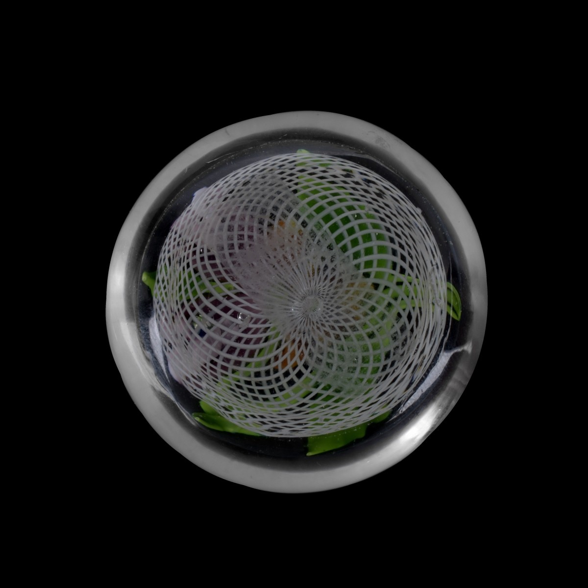 Antique St. Louis Pansy Miniature Art Glass Paperweight. Single multi colored pansy center flower resting atop latticino swirls. Measures 1-1/4" H x 1-5/8" diameter. Provenance: L.H. Selman, LTD. The Glass Gallery. Condition: Good condition Estimate: $250.00 - $5000.00 Domestic Shipping: $32.00