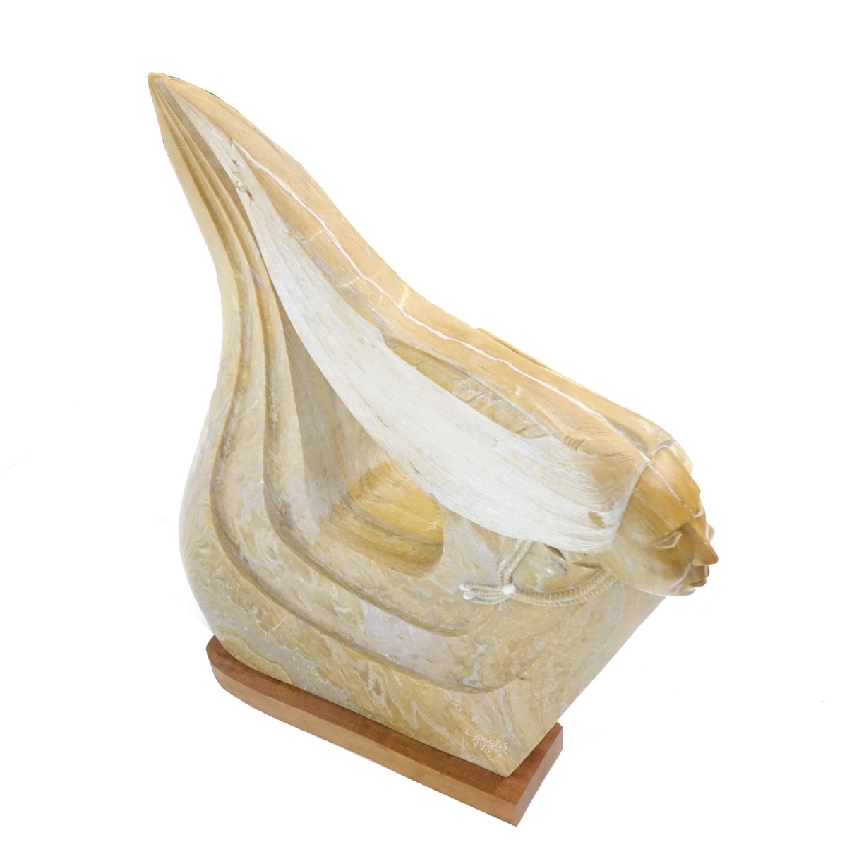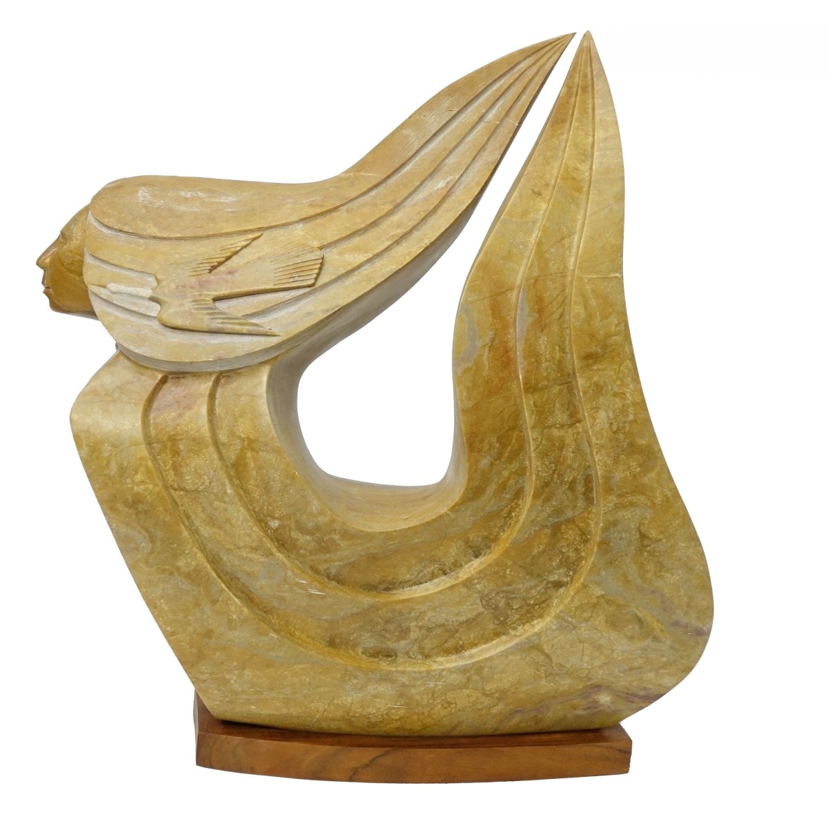 Larry Yazzie, Native American (Born 1958) Marble Sculpture "Winged Protector" Signed and Dated 1989. Measures 33-3/4" x 31". Condition: Repairs and cracks otherwise good condition. Estimate: $200.00 - $600.00 Domestic Shipping: Third party