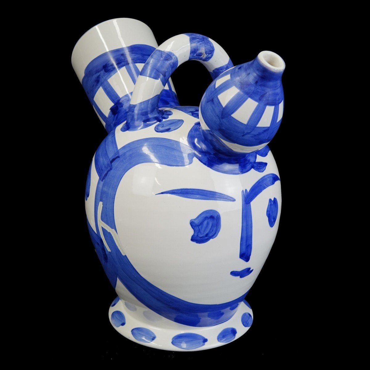 Pablo Picasso (1881-1973), 1952 White Earthenware Painted Vessel Partially Engraved, Pichet a Glace. Signed, stamped and numbered, Picasso / Madoura Plein Feu / Edition Picasso / Madoura 70/100. Alain Ramie catalog No. 142. Measures 12-3/4" H, 7-1/2" W. Condition: Very good condition. Estimate: $40,000.00 - $50,000.00 Domestic Shipping: $165.00