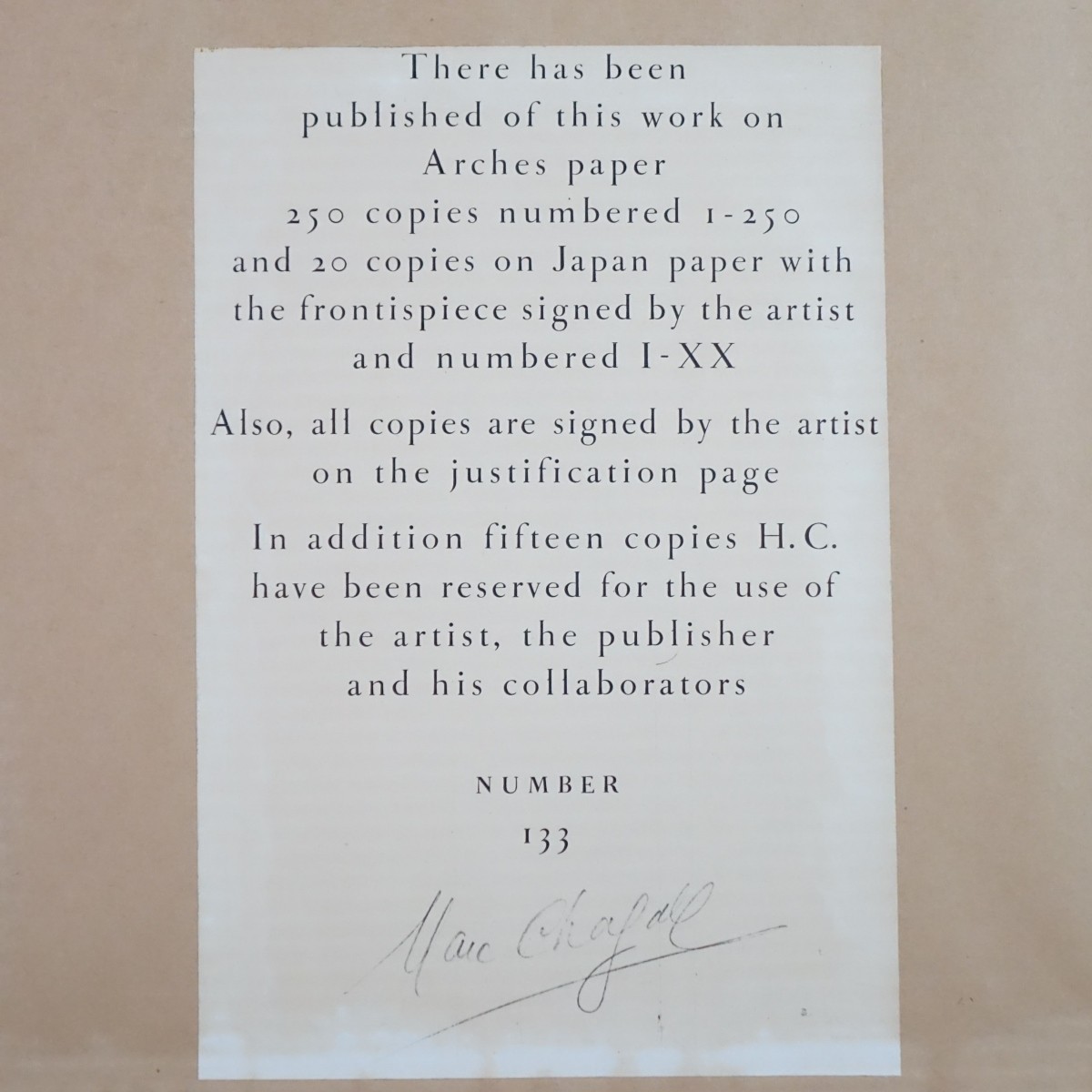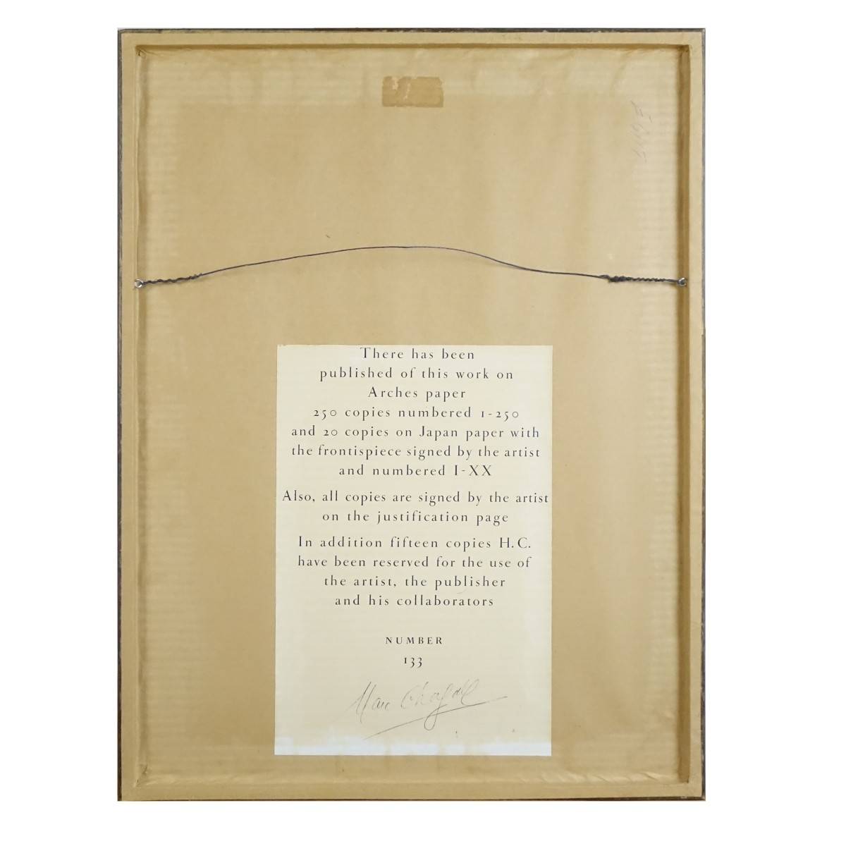Marc Chagall, Russian/French (1887 - 1985) Color Lithograph on Arches Paper "Exodus Series: Moses Blessing Joshua" Signed and Numbered 133/250. Label on Obverse Side. Measures 18-1/2" x 13", frame measures 25-1/4" x 19-1/8". Condition: Good condition. Light toning. Estimate: $500.00 - $800.00 Domestic Shipping: $145.00