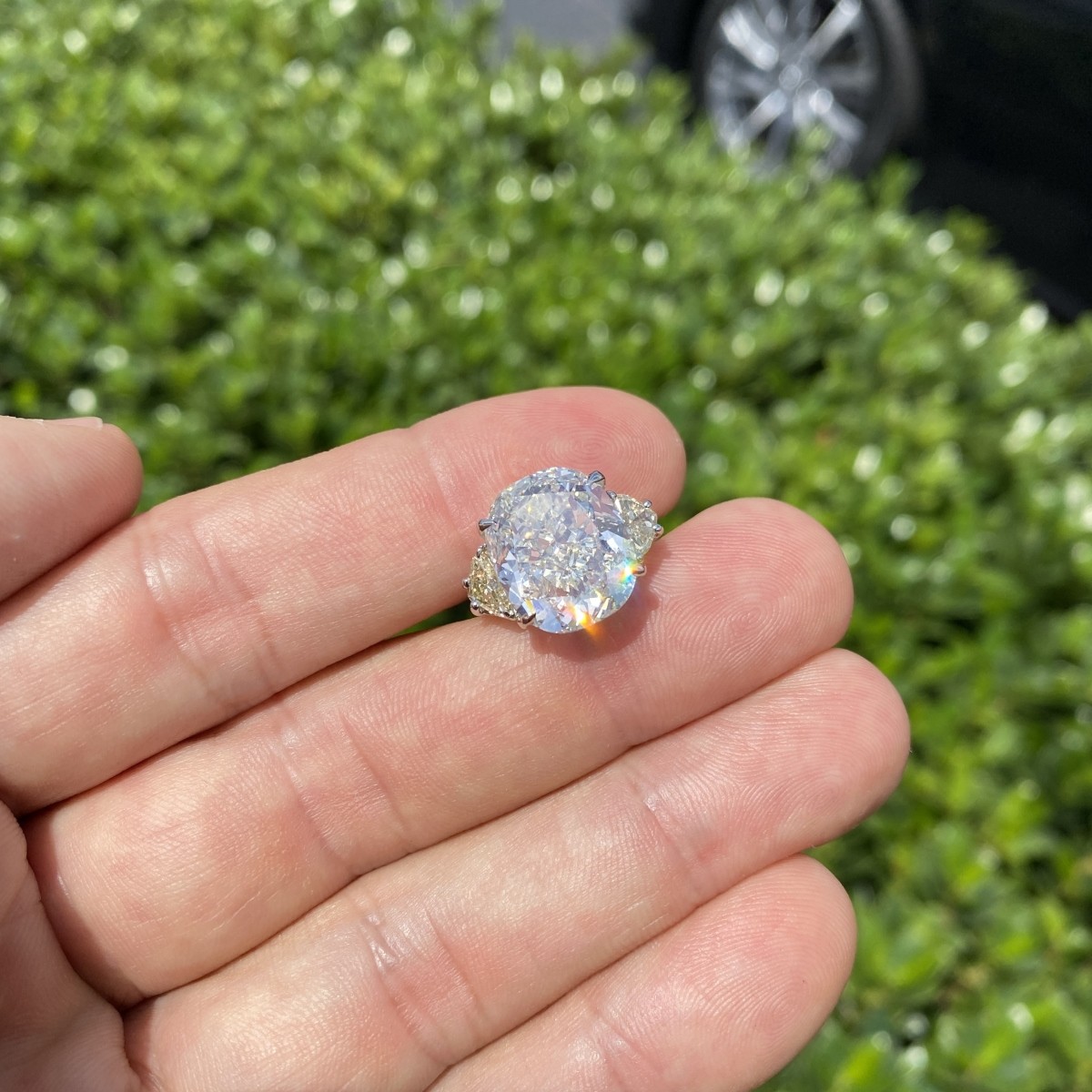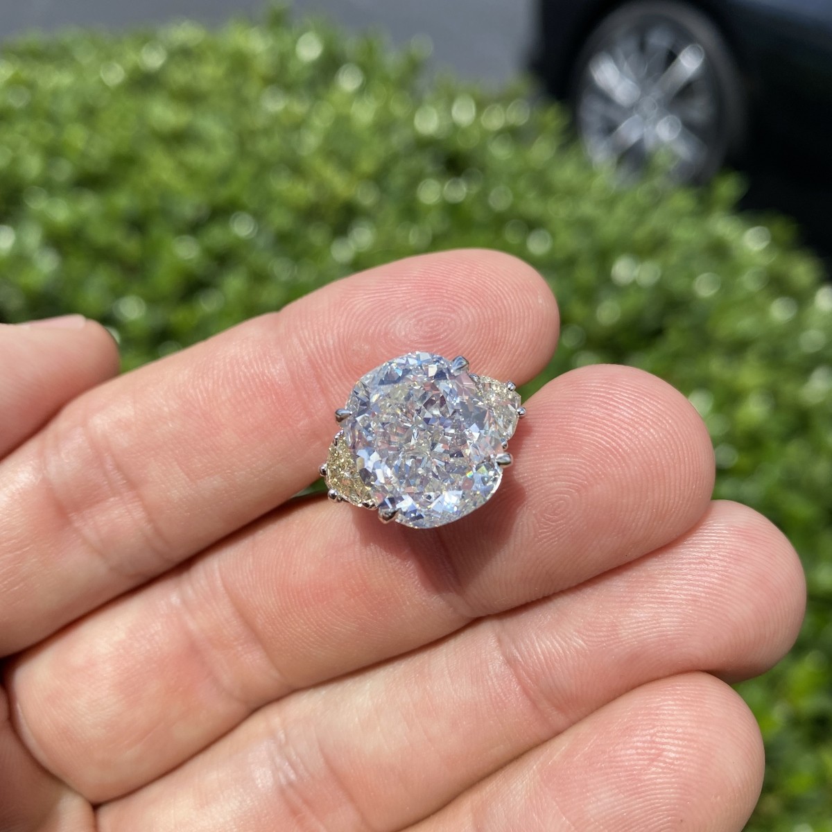 EGL Certified 12.03 Carat Cushion Cut Diamond, .80 Carat TW Two Half Moon Shape Diamond and 18 Karat White Gold Engagement Ring. Center diamond J color, VS2 clarity. Ring size 6-1/2. Approx. weight: 10.43 grams. EGL Report 1858017939 dated 2/13/2019 to accompany this Lot. Condition: Very good condition. Please refer to EGL report for details. For additional information and/or WhatsApp video please contact our resident GIA Graduate Gemologist, Russ Kodner at 954.650.5030 Estimate: $120,000.00 - $180,000.00 Domestic Shipping: $30.00