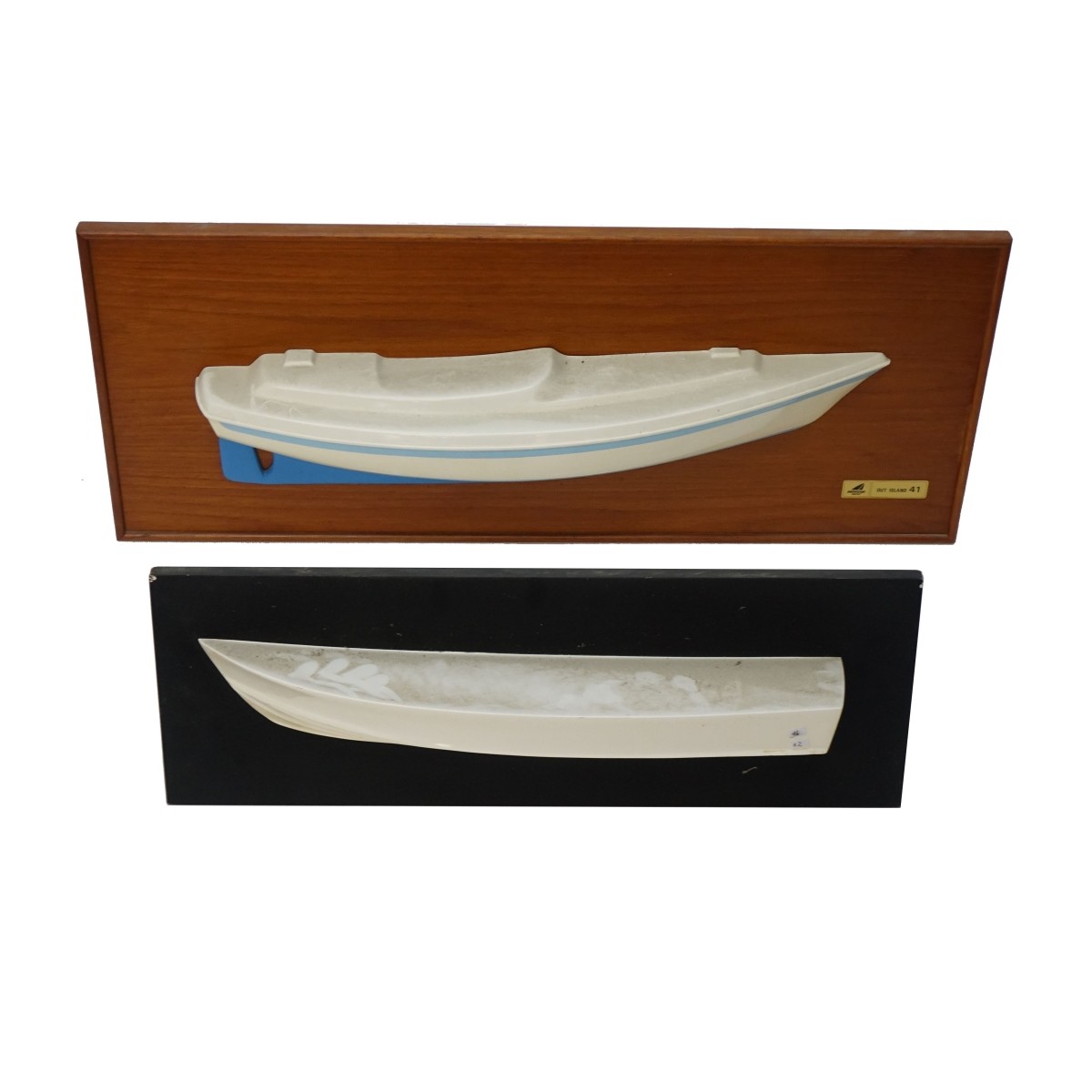 Grouping of Two (2) Vintage Wooden Half Hull Ship's Models. One is Titled "Out Island 41". Largest measures 16-3/8" x 39-1/2". Other measures 9-1/2" x 26-3/4". Condition: Each with some surface scuffs otherwise good condition. Estimate: $50.00 - $150.00 Domestic Shipping: Third party