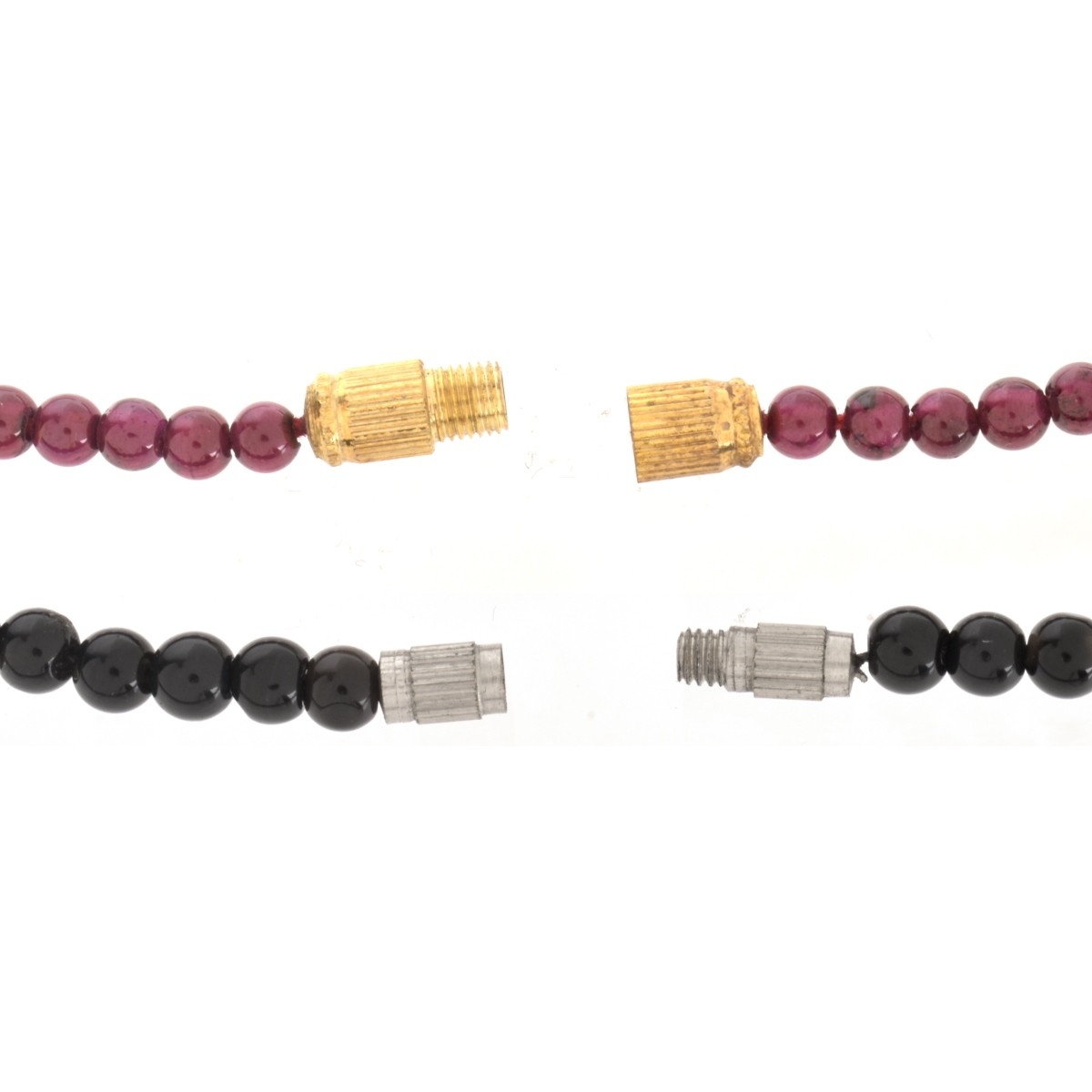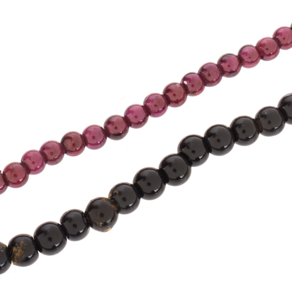 Vintage 4.0mm Ruby Bead Necklace and 4.0-5.0mm Black Onyx Bead Necklace. Measure 16" L. Approx. weight: 28.71 grams. Condition: Good vintage condition. Estimate: $100.00 - $150.00 Domestic Shipping: $30.00