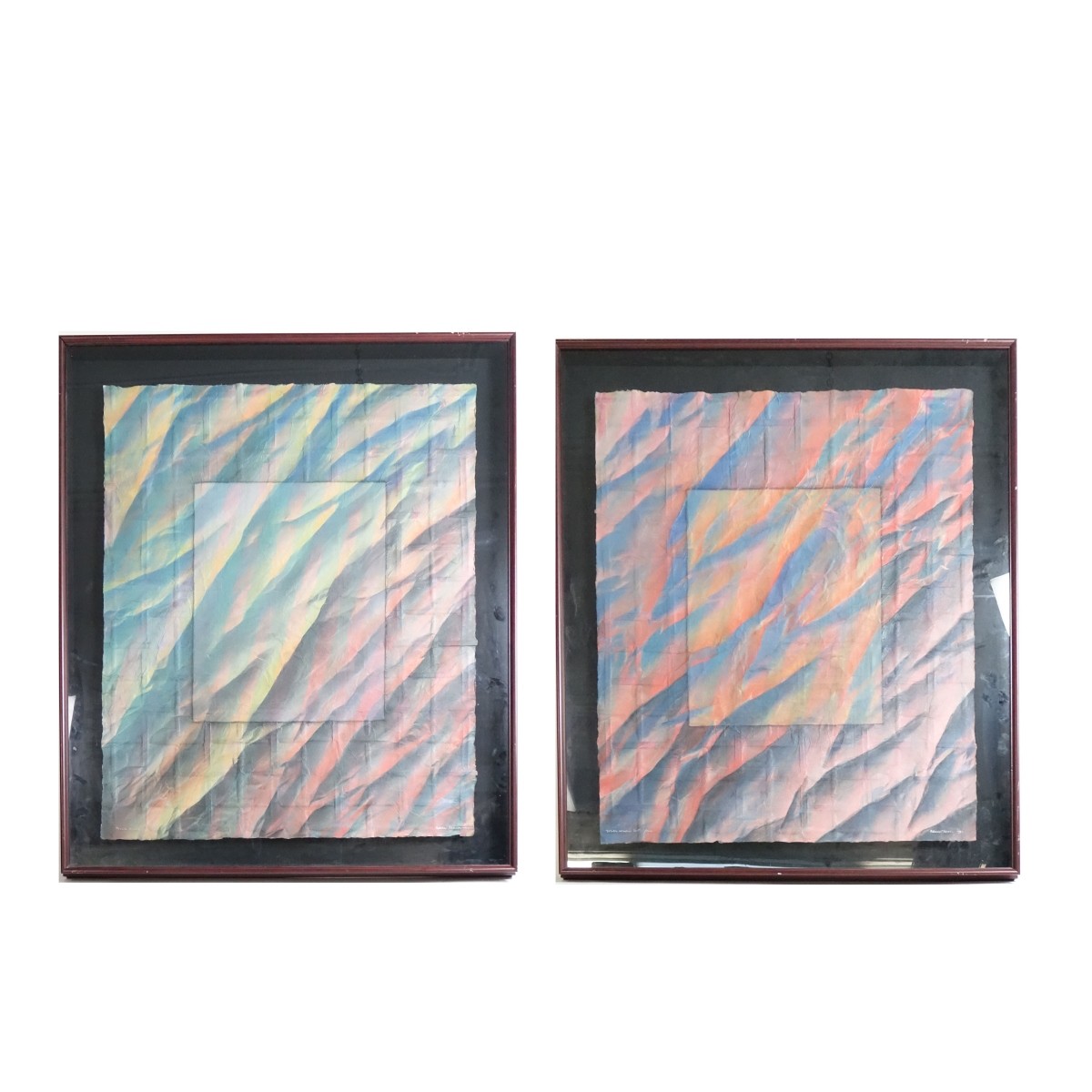 Nance O'Banion, American (b. 1942) Three Mixed Media Artworks on Paper Two from: "Winter Windows Series" Signed. Frames measure 41-1/4" x 49-1/8". From the IBM Building. Boca Raton, FL. Condition: Good condition. Estimate: $50.00 - $150.00 Domestic Shipping: Third party