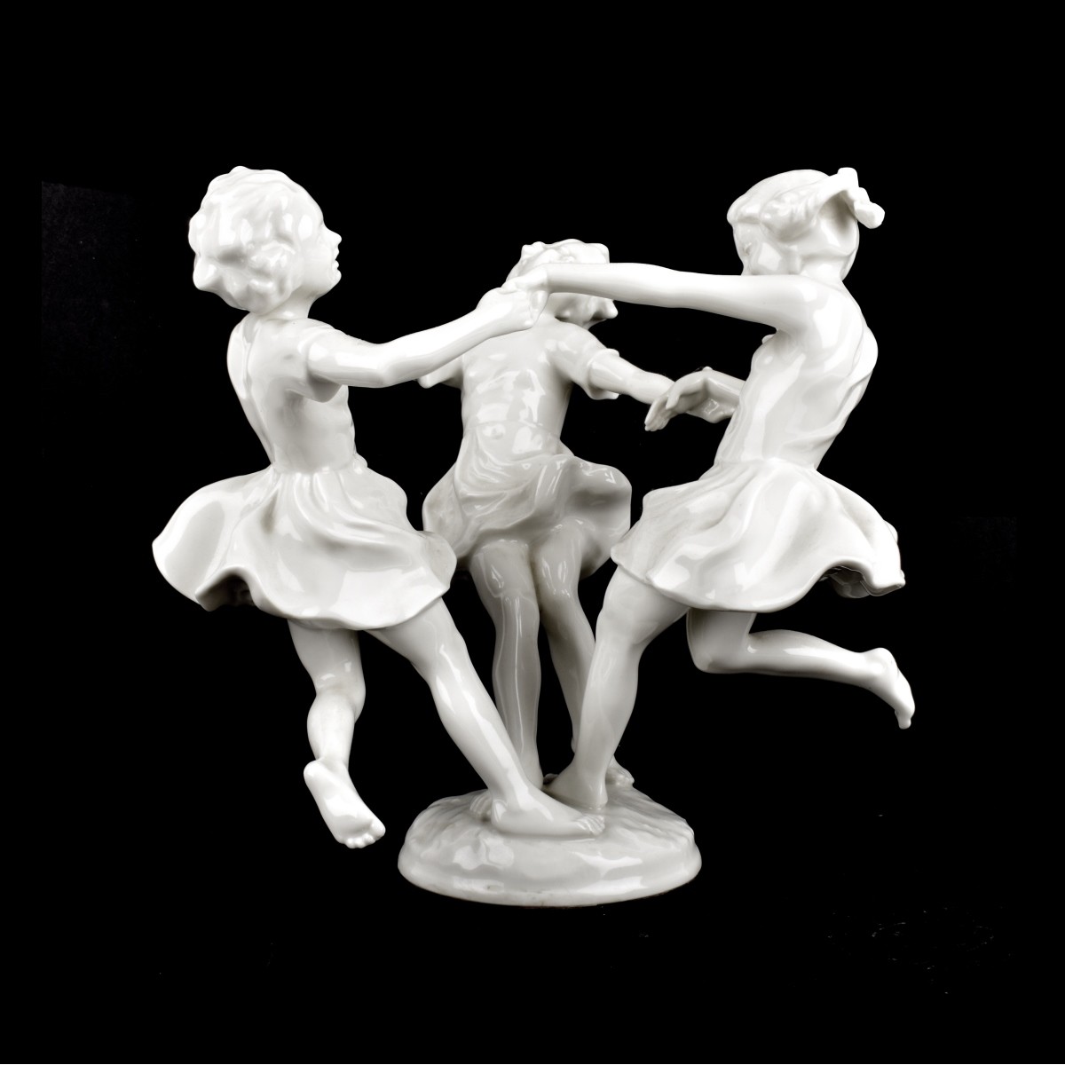 Hutschenreuther "Three Graces" Blanc de Chine Group. Previously en suite with a flower frog. Measures 8-1/2" x 9-1/2". Condition: Good condition. No frog. Estimate: $50.00 - $150.00 Domestic Shipping: Third party