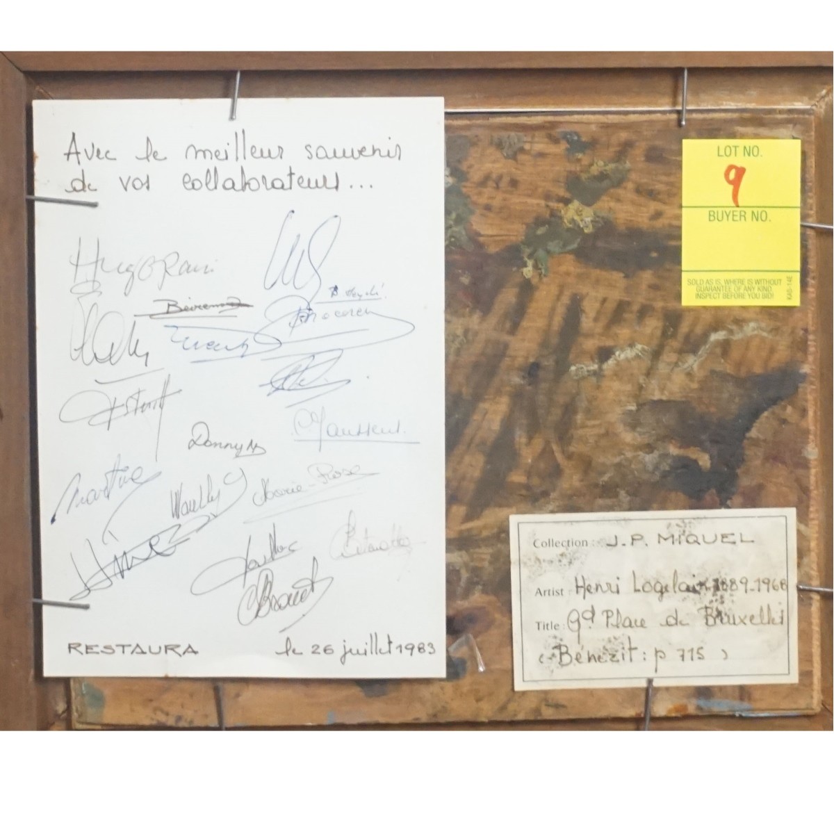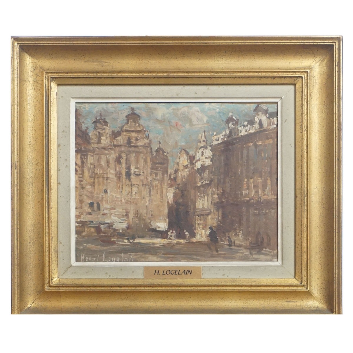 Henri Logelain, Belgian (1889 - 1968) Oil on Panel "View in Bruxelles" Signed Lower Left. Signed Tag affixed to the frame. Inscribed labels attached en verso. Measures 7-3/8" x 9-1/8", frame measures 12-1/2" x 14-1/4". Condition: Good condition. Estimate: $200.00 - $500.00 Domestic Shipping: $78.00
