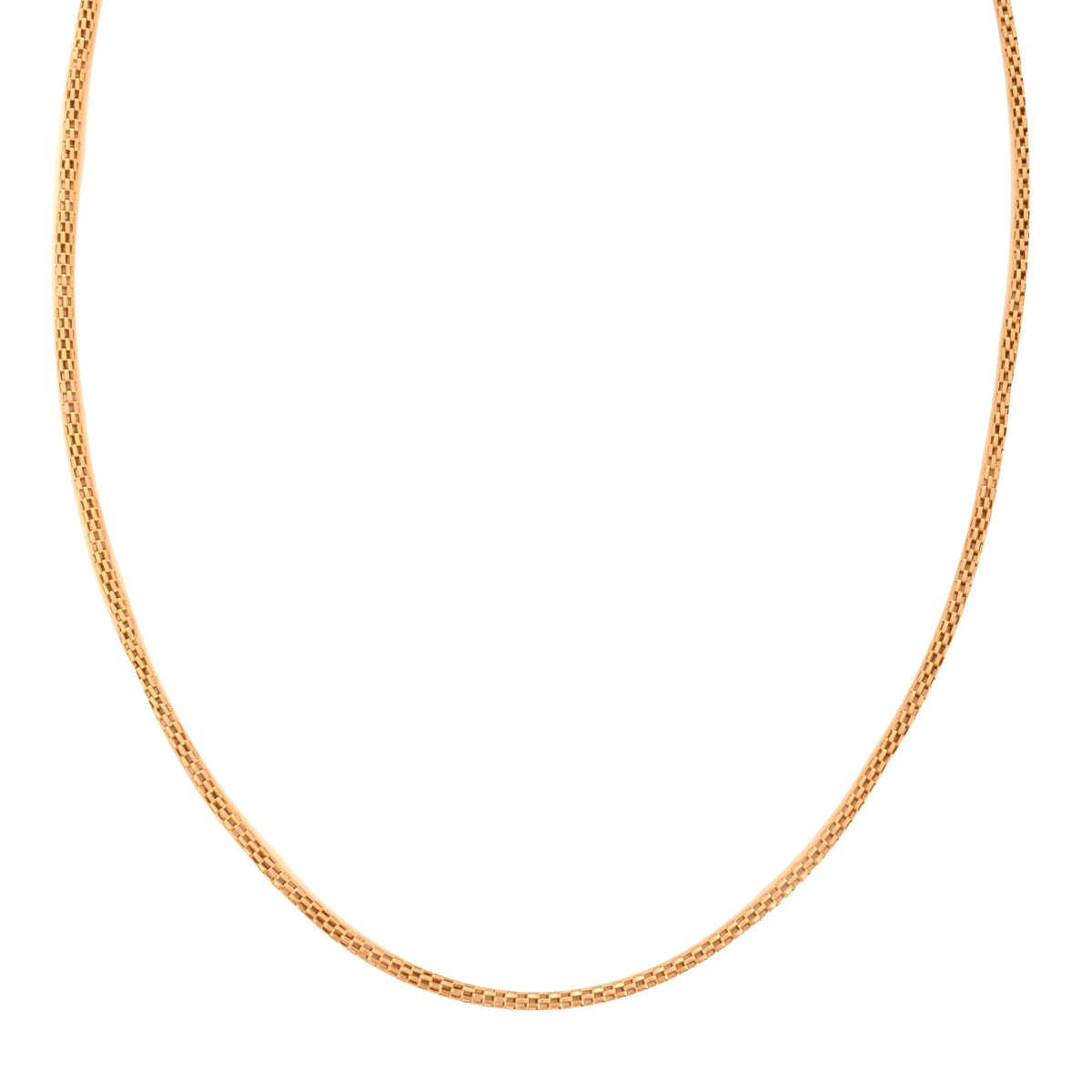 Vintage 18 Karat Yellow Gold Box Link Chain / Necklace. Measures 22" L, 1/16" W. Approx. weight: 9.75 grams. Condition: Very good vintage condition. Estimate: $400.00 - $600.00 Domestic Shipping: $30.00