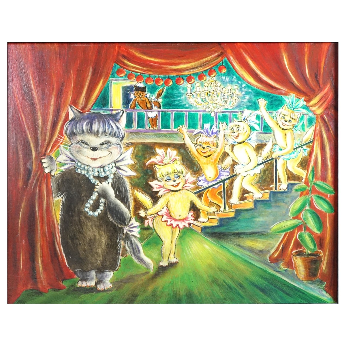 Wolo Trutzschler, German (1902 - 1989) Painting on Board "Dancing Cats" Signed and Dated Lower Right. Measures 23-1/2" H x 26" W, frame measures 31-1/4" H x 35-3/4" W. Provenance: The estate of Leon Amar, Palm Beach, Florida. Condition: Good condition. Estimate: $50.00 - $150.00 Domestic Shipping: Third party