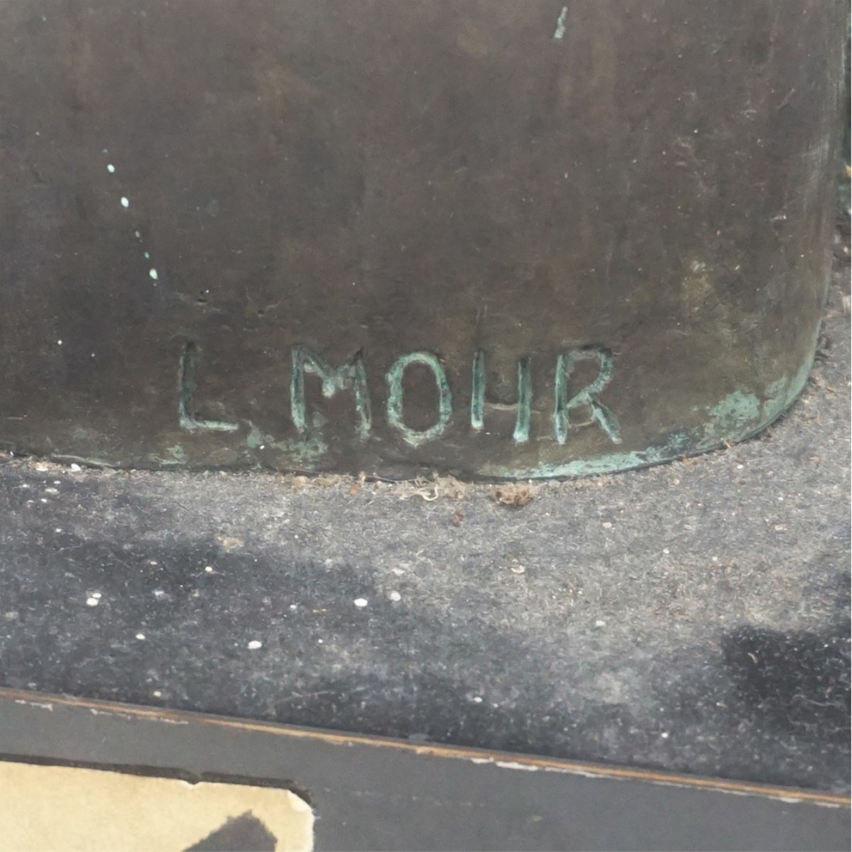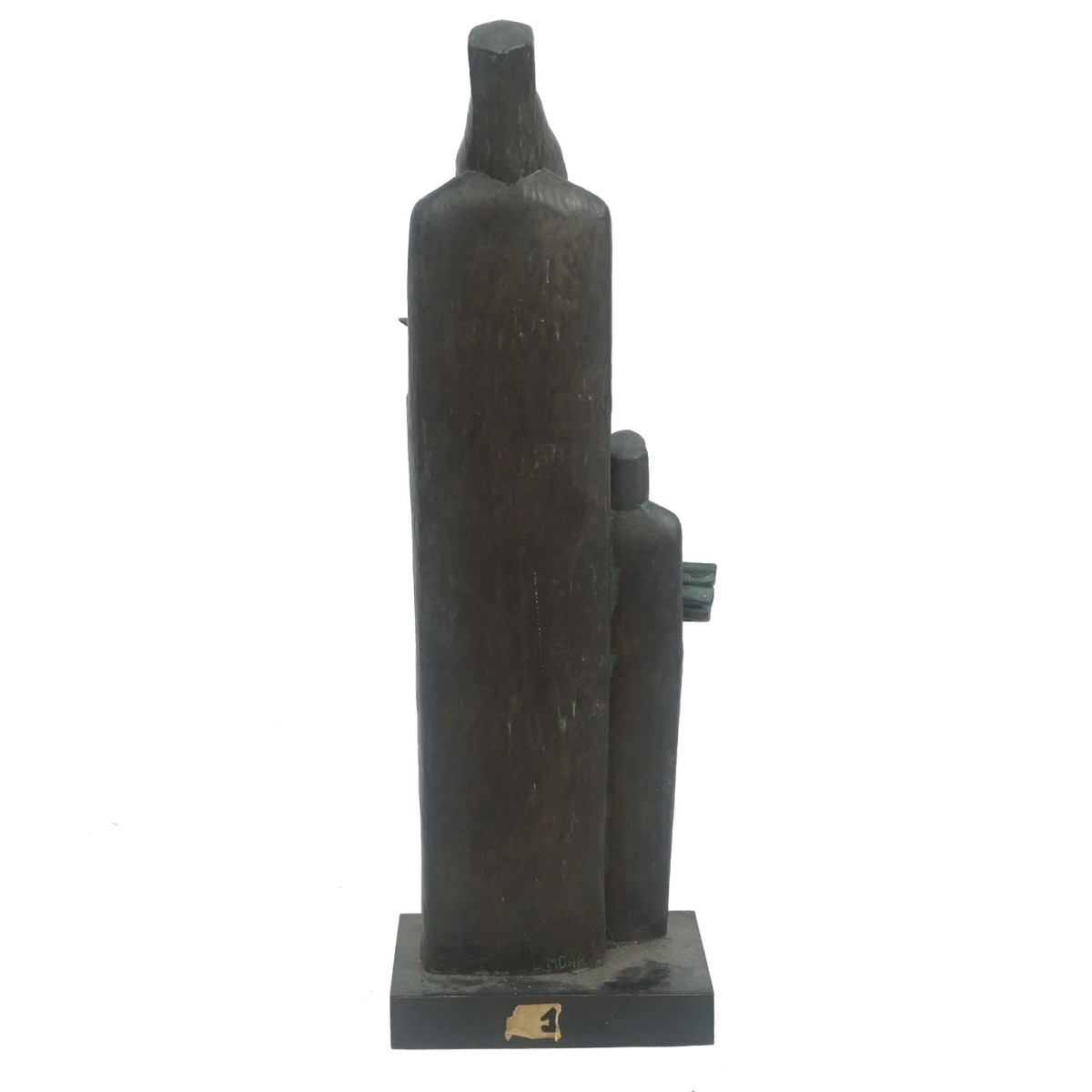 Larry Mohr, American (1921 - 2013) Large Bronze Sculpture on Plinth Base "Abraham and Isaac" Signed, Bears a Museum of Arts Monogram. Measures 27-1/2" x 10" x 8". Provenance: Estate of Larry Mohr. Larry Mohr was an accomplished sculptor whose figural and abstract works are in the collections of the Metropolitan Museum of Art, Georgia Museum of Art, Vassar College and the Herbert F. Johnson Museum at Cornell University. Condition: Good condition. Green spotting and rubbing. Estimate: $200.00 - $800.00 Domestic Shipping: Third party