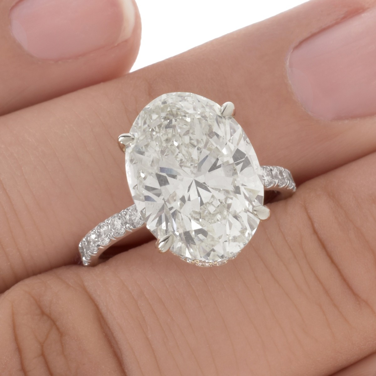 HRD Certified 7.51 Carat Oval Cut Diamond and 18 Karat White Gold Engagement Ring. Diamond J color, SI2 clarity. Accented with .80 carat TW round brilliant cut diamonds, E-F color, VS1-VS2 clarity. Stamped 18K. Ring size 6. Approx. weight: 5.55 grams. HRD Certificate 20000064123 to accompany this Lot. Condition: Very good condition. For additional information and/or WhatsApp video please contact our resident GIA Graduate Gemologist, Russ Kodner at 954.650.5030 Estimate: $90,000.00 - $110,000.00 Domestic Shipping: $32.00