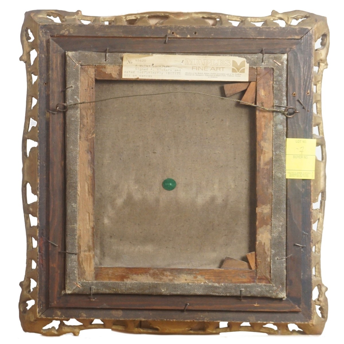 Alfred H Vickers, British (1853 - 1907) Oil on Canvas "Village Scene" Signed and Dated 1879 Lower Left. Gallery label attached en verso. Measures 12-1/8" x 10-1/8", frame measures 16-3/4" x 14-3/4". Condition: Good condition. Estimate: $100.00 - $300.00 Domestic Shipping: $78.00