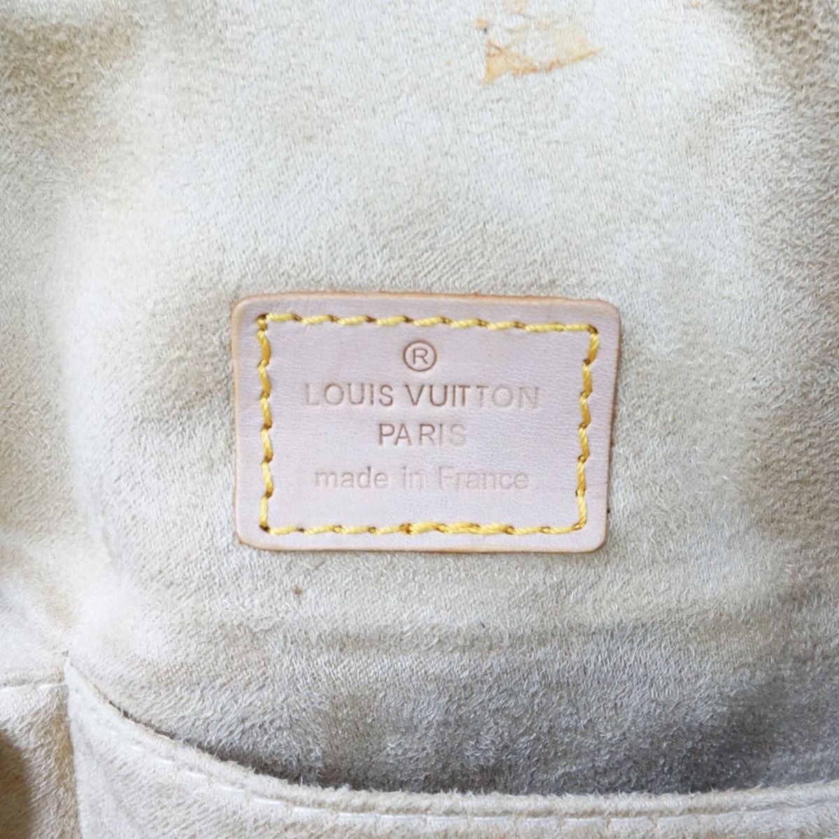 Replica Louis Vuitton Monogrammed Handbag. Marked on interior. Rolled handles, gold tone hardware, and a shoulder strap to accompany the lot. Measures 7-1/2" x 13" x 7". Condition: Minor rubbing at the base of the bottom trim overall good condition. Estimate: $50.00 - $150.00 Domestic Shipping: $55.00