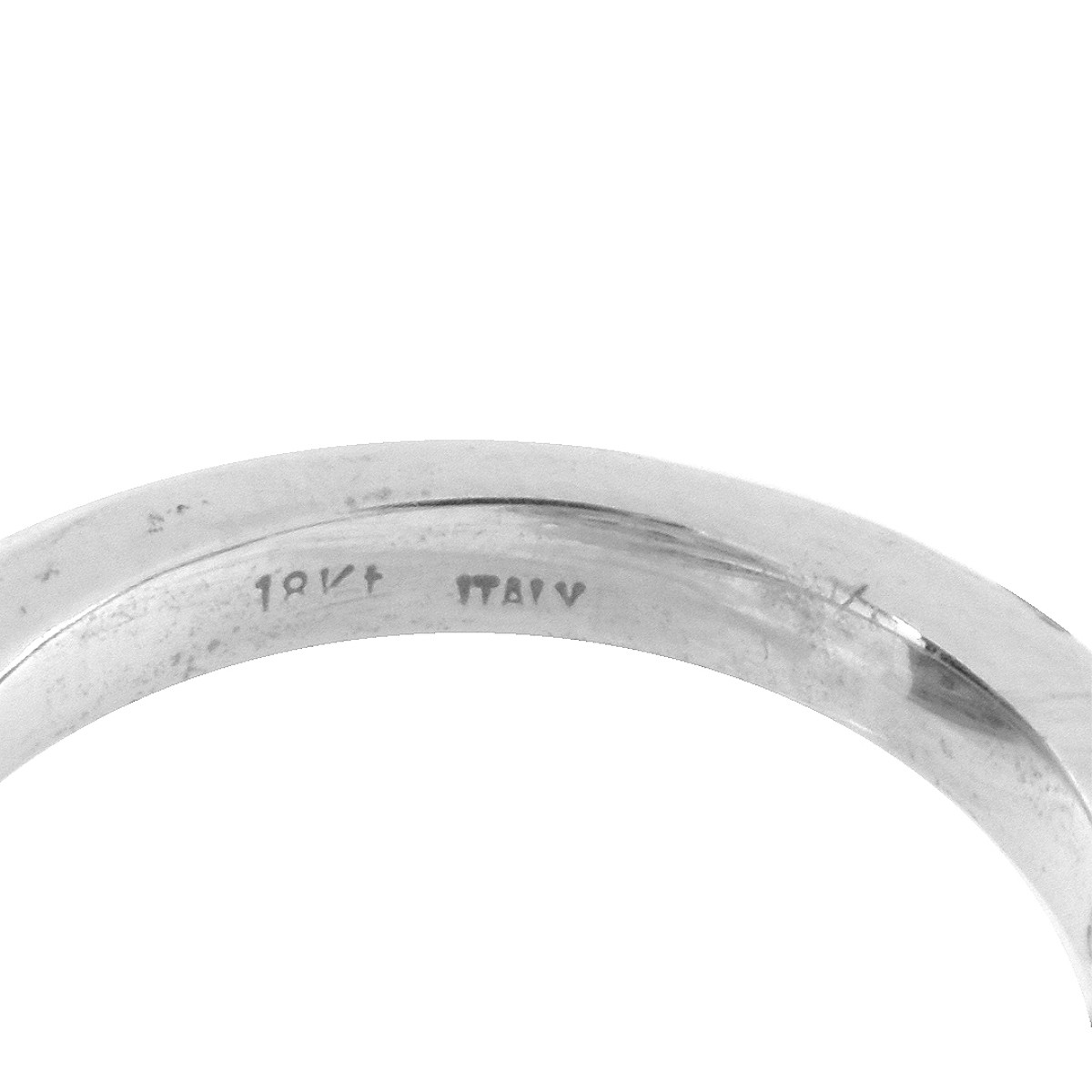 Contemporary Design Italian Angel Skin Coral, Small Round Cut Diamond and 18 Karat White Gold Ring. Coral measures 15.5mm diam. Stamped Italy 18K. Ring size 6. Approx. weight: 14.09 Condition: Very good condition. Estimate: $600.00 - $900.00 Domestic Shipping: $28.00