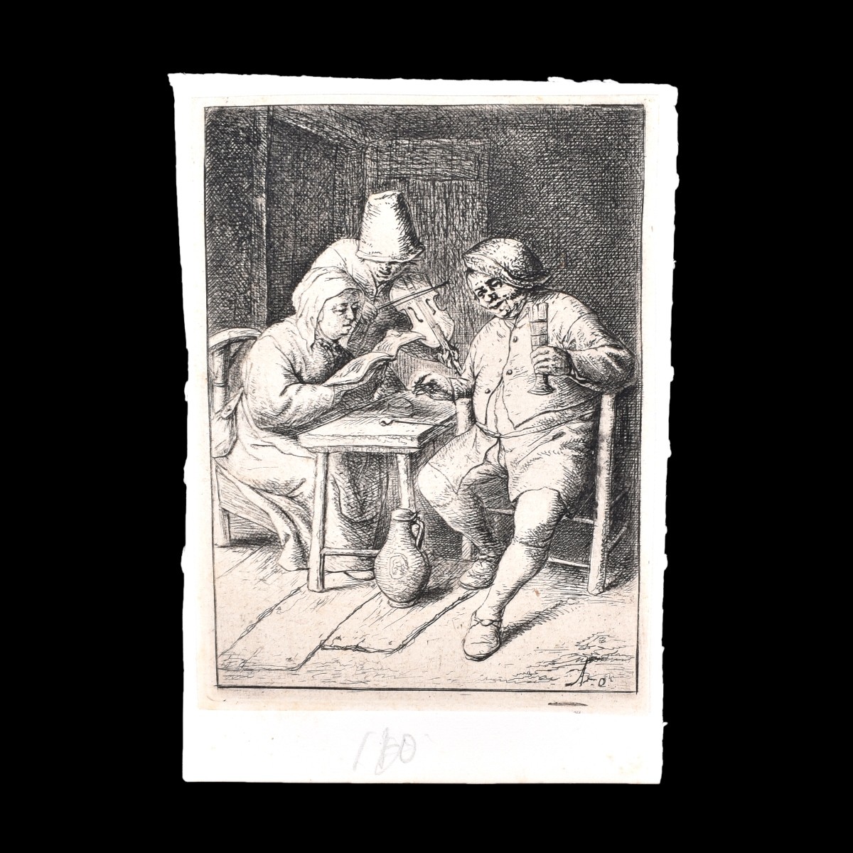 Adriaen Jansz van Ostade, Dutch (1610 - 1685) Etching on Paper "The Concert" Signed in the Plate Lower Right. Sheet size: 5" H x 3-3/4" W. Condition: Good condition Estimate: $50.00 - $150.00 Domestic Shipping: $28.00